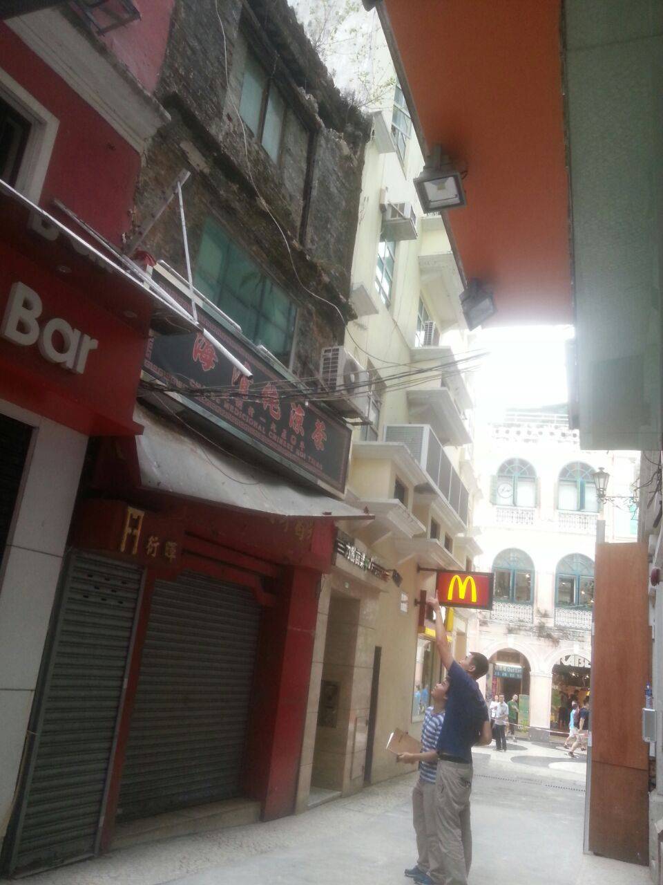 O edifício nesta zona é situado no conjunto do Largo de S. Domingos classificado, sendo um edifício antigo com três andares constituído pela parede de tijolos e telhas. O Secretário para os Assuntos Sociais e Cultura, Alexis, Tam Chon Weng mostrou a preocupação com o caso relevante. O IC está a acompanhar o caso e mantém a ligação íntima com a Direcção dos Serviços de Solos, Obras Públicas e Transporte (DSSOPT).