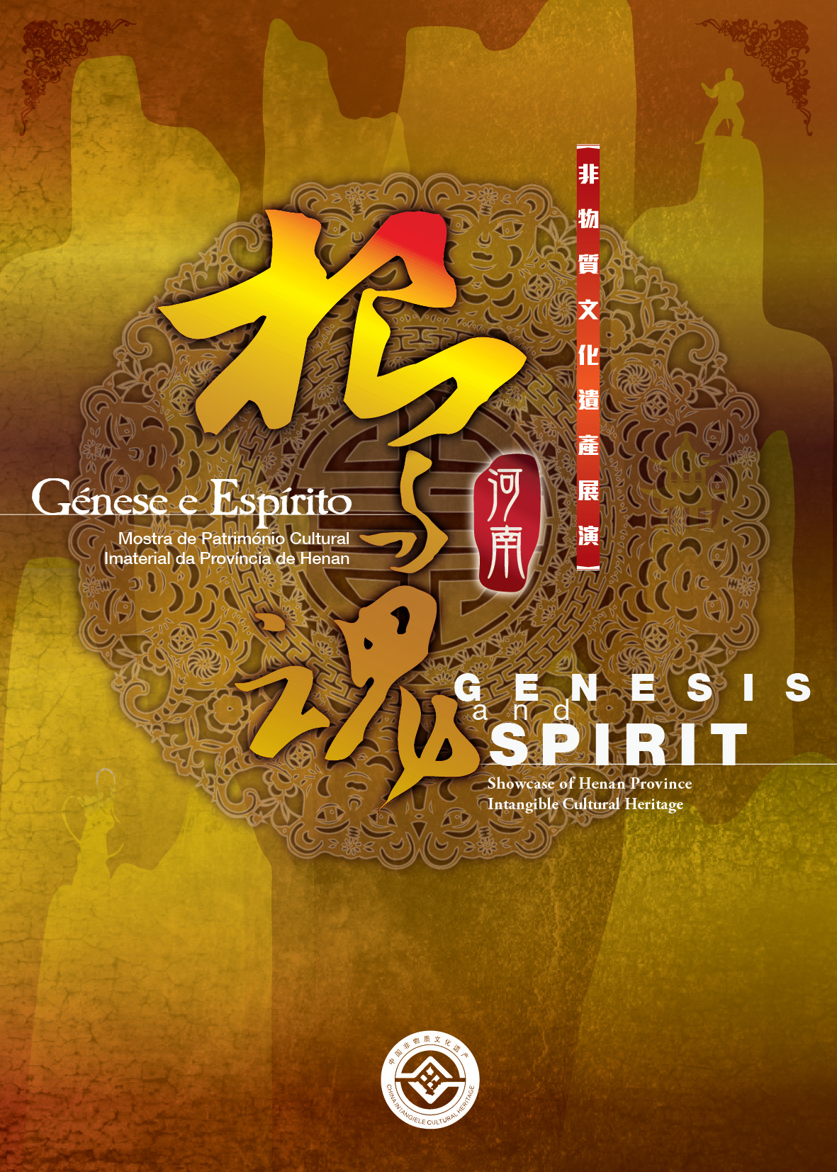 Em comemoração do 10.º Aniversário do “Centro Histórico de Macau” como Património Mundial bem como do Dia do Património Cultural da China 2015, realiza-se “Génese e Espírito-Mostra de Património Cultural Imaterial da Província de Henan”, com o apoio do Ministério da Cultura da R.P.C., do Governo Popular da Província de Henan e do Secretariado para os Assuntos Sociais e Cultura do Governo da R.A.E.M., co-organizada pelo Serviço para as Relações Culturais Externas e Departamento para os Assuntos Culturais com as Regiões de Hong Kong, Macau e Taiwan do Ministério da Cultura da R.P.C., pelo Instituto Cultural do Governo da R.A.E.M. e pelo Departamento de Cultura da Província de Henan e a colaboração do Galaxy MacauTM. Esta mostra pretende apresentar aos cidadãos a variedade do património imaterial da Província de Henan através de exposições, demonstrações, workshops e de uma palestra, entre outros.