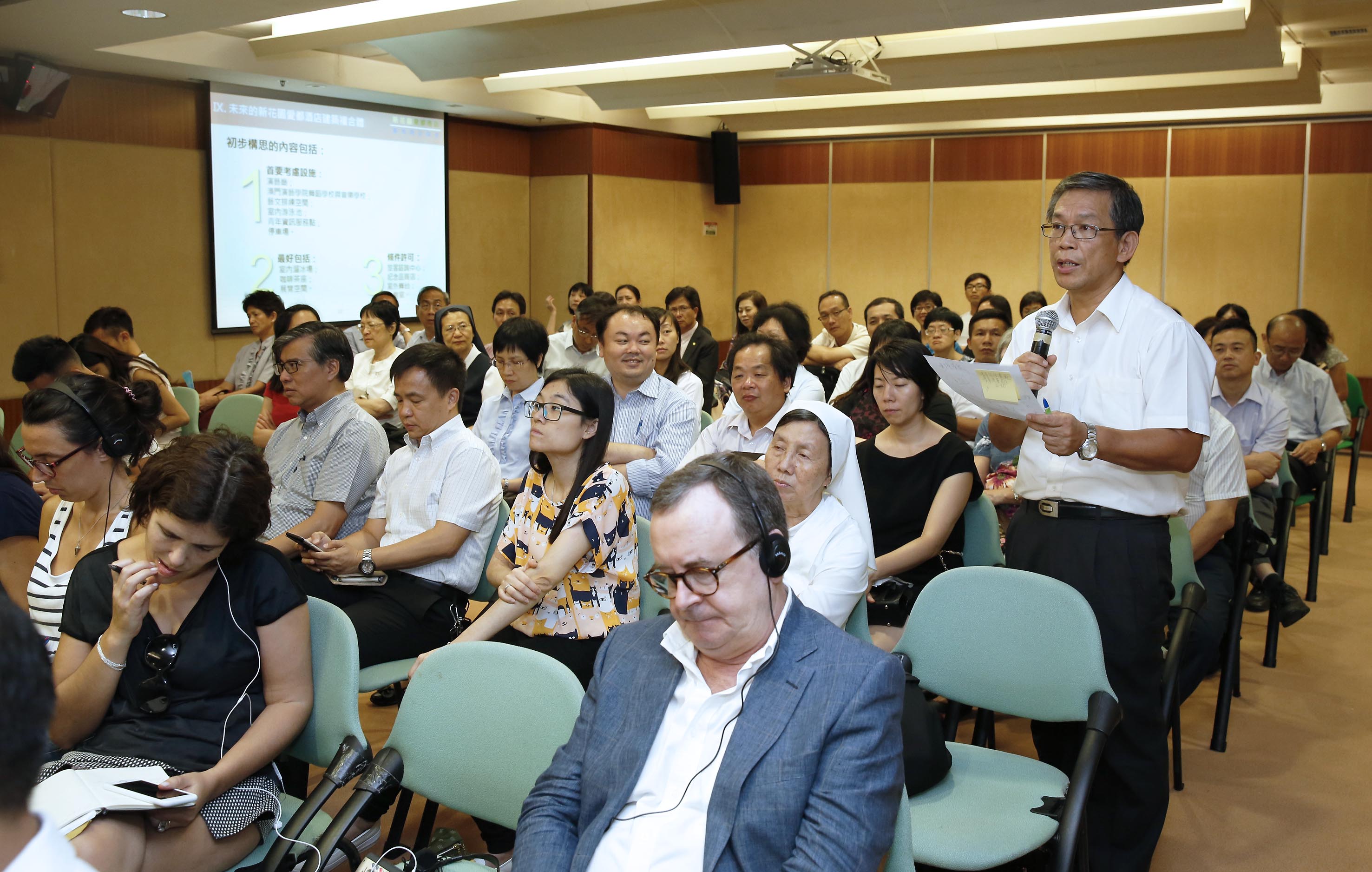 A sessão foi presidida pelo Chefe do Gabinete do Secretário para os Assuntos Sociais e Cultura, Lai Ieng Kit, a directora da DSEJ, Leong Lai, o presidente substituto do ID, Pun Weng Kun e o vice-presidente substituto do IC, Chan Peng Fai, os quais desenvolveram um intercâmbio com os representantes das associações educativas e dirigentes das escolas e ouviram as suas opiniões. Lai Ieng Kit e Chan Peng Fai apresentaram ideias para o reaproveitamento do Antigo Hotel Estoril e Piscina Municipal Estoril, apontando que o hotel em conjunto com as instalações adjacentes, no futuro, será reconvertido para um complexo com elementos de arte, indústrias criativas, educativos, culturais, desportivos, recreativos e de lazer, estando também incluído o Conservatório de Macau, assim como se irá articular com o património cultural e instalações recreativas e desportivas adjacentes, criando um efeito de sinergia, transformando a zona de Tap Seac num centro de actividades artísticas, culturais, recreativas e desportivas. Em paralelo, surgiu a ideia de transformar a Piscina Municipal Estoril numa piscina de água climatizada; caso exista espaço suficiente, também poderá ser construída uma pista de gelo, tornando-se assim o local num complexo arquitectónico em conjunto com o Hotel Estoril.