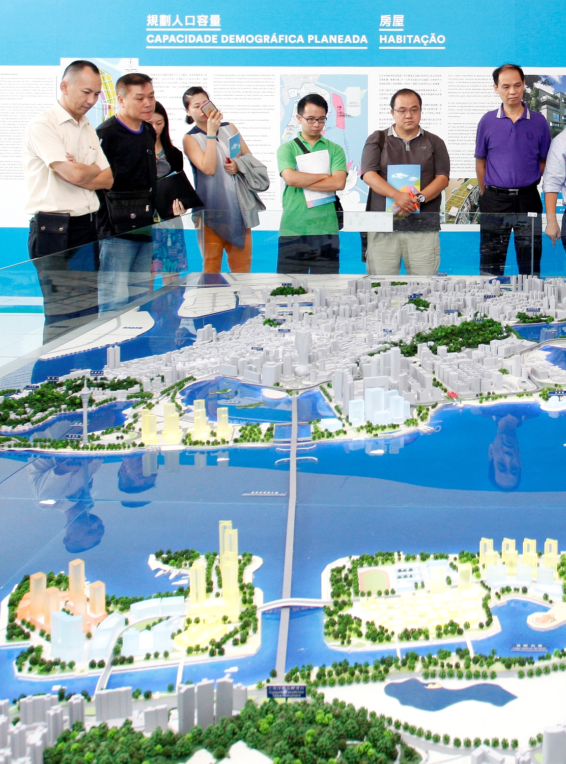 Os membros dos Conselhos Consultivos do Ambiente, do IACM e dos serviços comunitários, bem como, os membros da direcção e do conselho fiscal das várias associações dos moradores visitaram ultimamente a exposição realizada no Centro Comercial da Praça do Tap Seac para ouvir as explicações dos urbanistas e arquitectos da DSSOPT sobre os principais aspectos do projecto do plano director dos novos aterros.