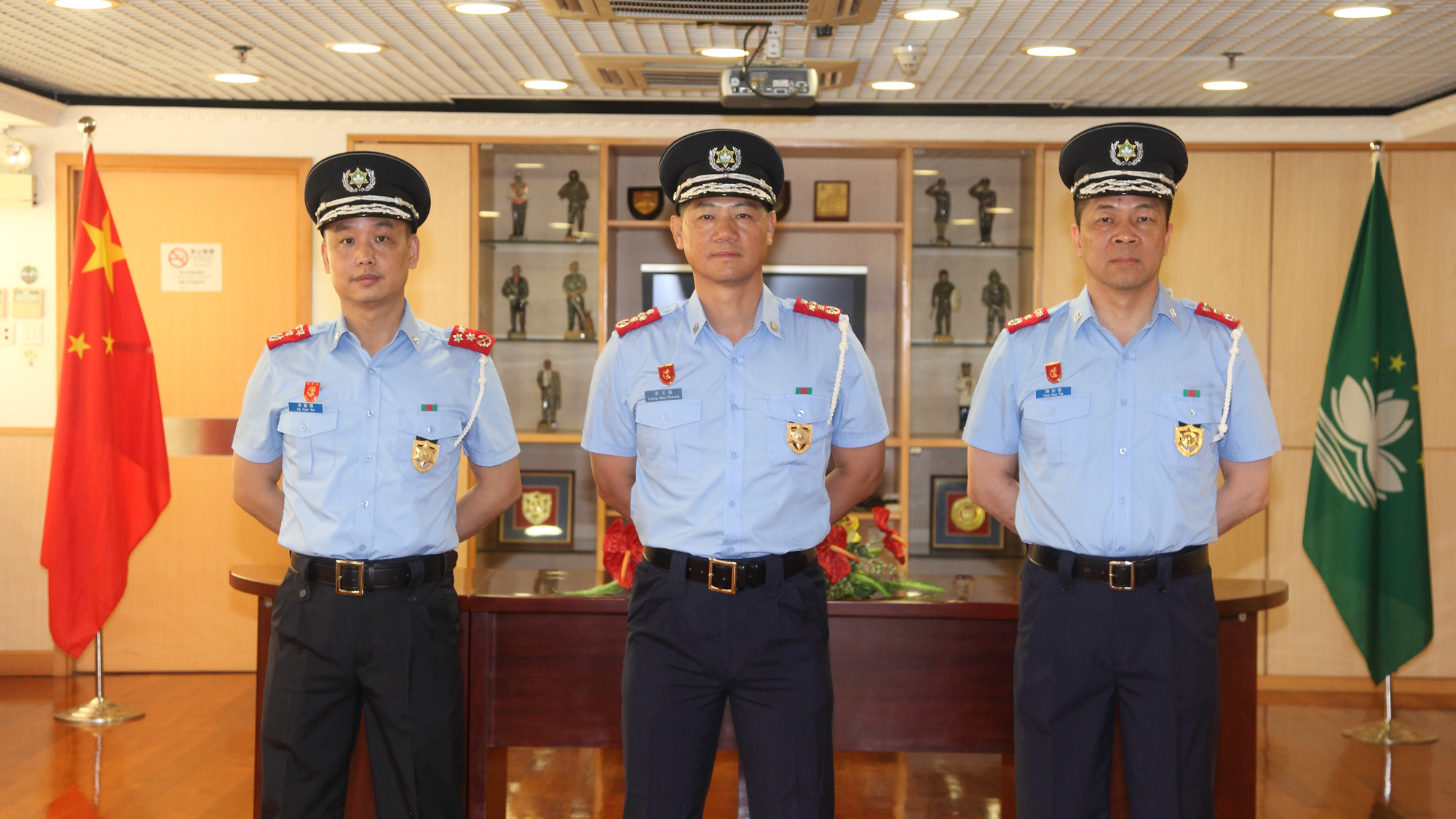 O 2.º Comandante Ng Kam Wa ingressou no Corpo de Policia de Segurança Pública em 1986, posteriormente, frequentou o 2.º Curso de Formação de Oficiais da Escola Superior das Forças de Segurança de Macau, e, após concluir o referido curso, desempenhou funções de chefia na Unidade Táctica de Intervenção da Polícia; o 2.º Comandante Chan Man Tak ingressou no Corpo de Policia de Segurança Pública em 1986, posteriormente, frequentou o 1.º Curso de Formação de Oficiais da Escola Superior das Forças de Segurança de Macau, e, após concluir o referido curso, desempenhou funções de chefia no Departamento de Operações, Departamento de Informações e Departamento Policial de Macau.