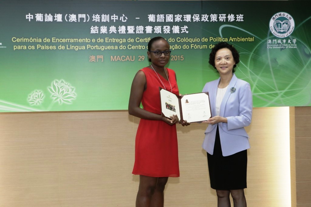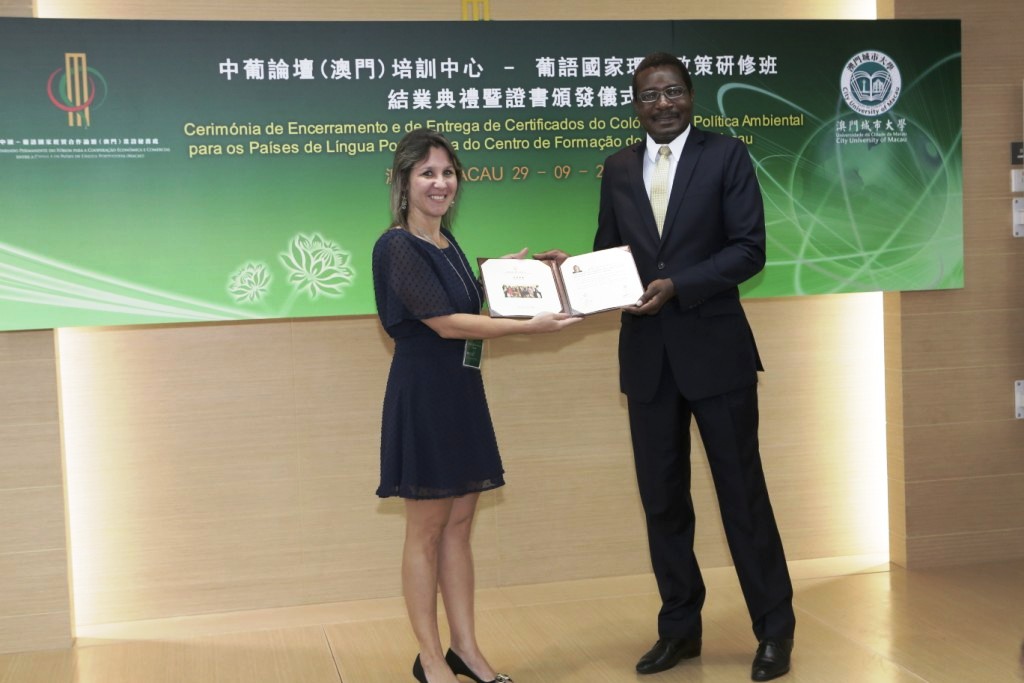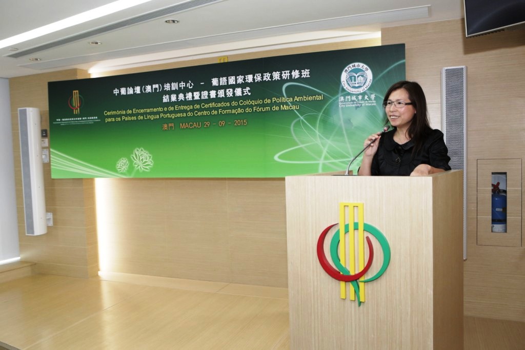 Realizou-se no dia 29 de Setembro de 2015, pelas 12:00, na Sala Multifuncional do Secretariado Permanente do Fórum de Macau, a Cerimónia de Encerramento e de Entrega de Certificados do Colóquio de Política Ambiental para os Países de Língua Portuguesa do Centro de Formação do Fórum de Macau, ministrado pela Universidade da Cidade de Macau.