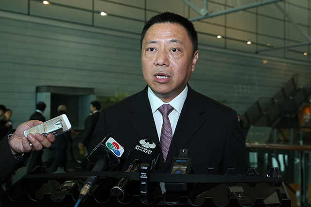 No que diz respeito a Macau, o secretário é da opinião que se devia aproveitar esta oportunidade de ajustamento económico e, assim, todos se empenharem na reestruturação dos sectores locais, reforçar a confiança, manter a dinâmica económica para alcançar a sua diversificação e arrancar para uma nova etapa do crescimento económico, nomeadamente intensificar o sector de convenções e exposições, desenvolver negócios electrónicos transfronteiriços, que contribui para o desenvolvimento das pequenas e médias empresas e criação de espaços para os jovens empreendedores.