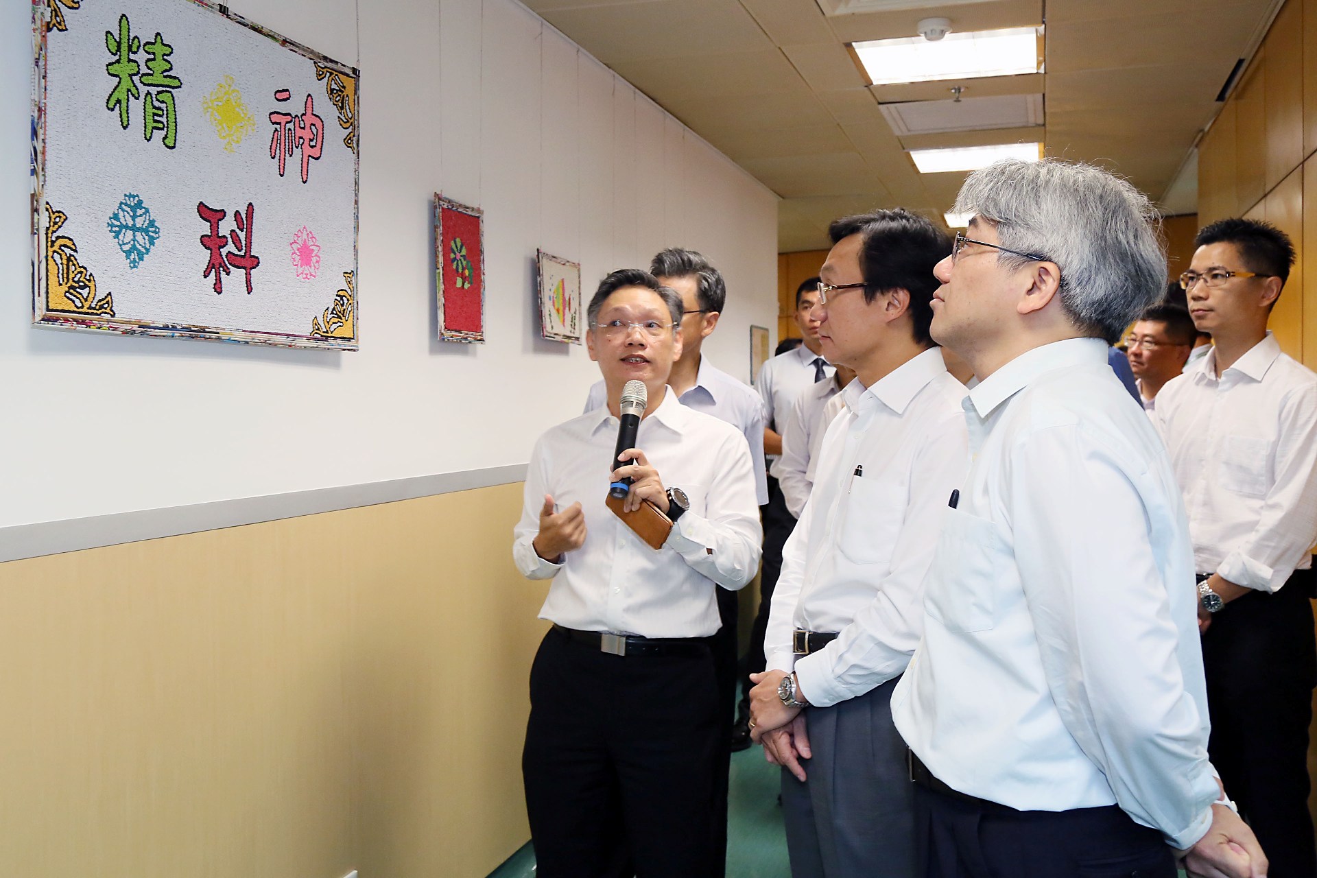 O Secretário para os Assuntos Sociais e Cultura, Dr. Alexis Tam, acompanhado pelo chefe do seu Gabinete, Dr. Lai Ying Kit, o Director dos Serviços de Saúde, Dr. Lei Chin Ion, o Director do Centro Hospitalar Conde de São Januário e cumulativamente Subdirector dos Serviços de Saúde, Dr. Kuok Cheong U e demais subdirectores dos Serviços de Saude, Dr. Chang Seng Ip e Dr. Ho Ioc San, entre outros, visitou o Edifício da Clínica Psiquiátrica do Centro Hospitalar Conde de São Januário, o Centro Clínico de Saúde Pública e o Alojamento dos Trabalhadores de Emergência de Saúde Pública, todos subordinados aos Serviços de Saúde, tendo tomado conhecimento do planeamento previsto para estes serviços percepcionado o ambiente de internamento dos doentes, o ambiente de trabalhos dos trabalhadores de saúde, bem como as instalações e equipamentos destinados aos serviços médicos.