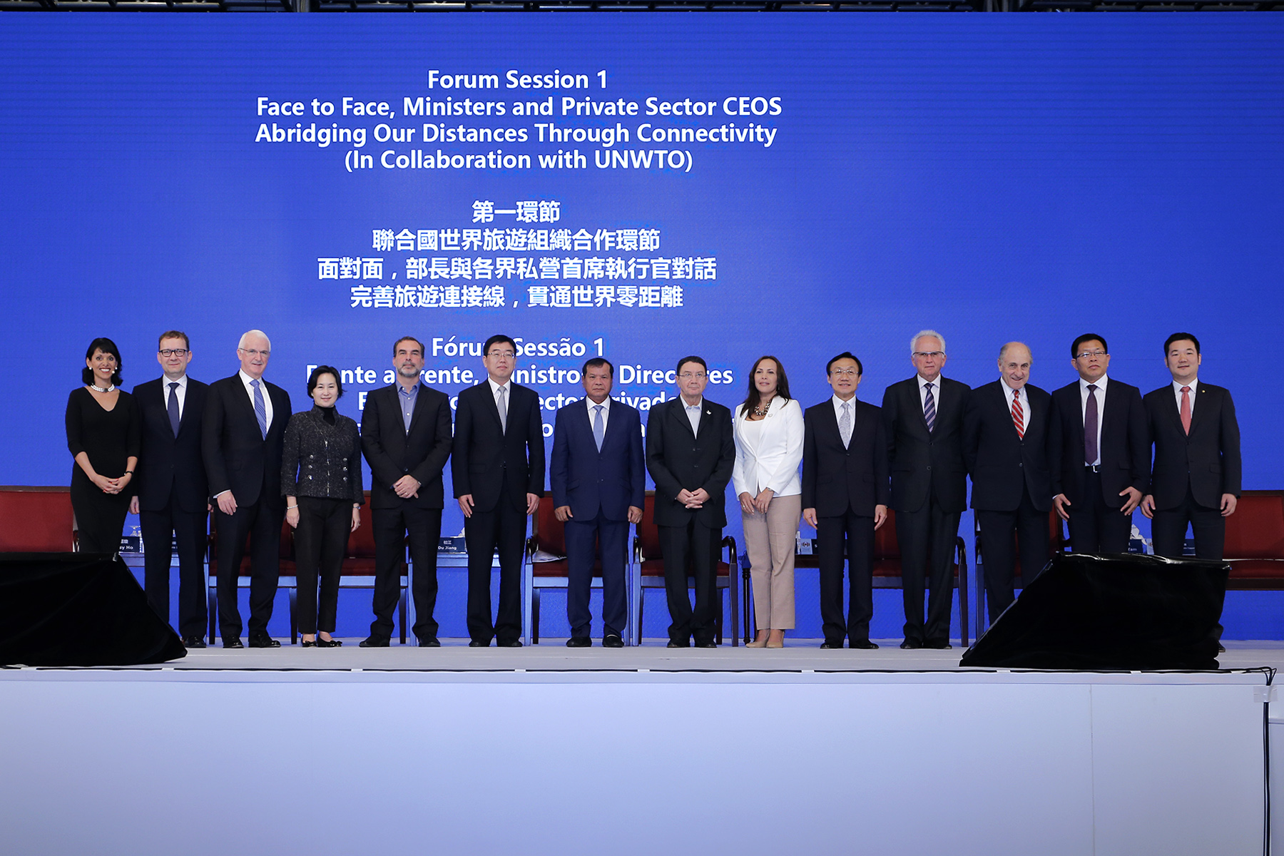 A sessão teve como orador principal, o Secretário-Geral da OMT, Doutor Taleb Rifai, ao qual se juntaram para o debate vários dignitários governamentais, nomeadamente o Ministro do Turismo do Reino do Camboja, Thong Kong, a Vice-Ministra da Indústria, do Comércio e do Turismo da Colômbia, Sandra Howard Taylor, o Vice-Presidente da CNTA, Du Jiang, o Secretário para os Assuntos Sociais e Cultura do Governo da RAEM, Doutor Alexis Tam, o Subsecretário de Coordenação do Ministério de Turismo da Argentina, Alejandro Schiavi, e o Chefe Executivo da Direcção dos Serviços de Turismo do México, Rodolfo López Negrete Coppel, a par com os líderes empresariais: a Directora Executiva da Shun Tak Holdings Limited, Pansy Ho, o Presidente e Director Executivo do Grupo Jumeirah, Gerald Lawless, o Director Executivo do Grupo Kuoni, Peter Meier, o Vice-Presidente do Grupo Fosun, Qian Jiannong, o Presidente do Conselho do Grupo Security, Francisco Silva Silva, e o Presidente do HNA Tourism Group Co. Ltd., Zhang Ling.