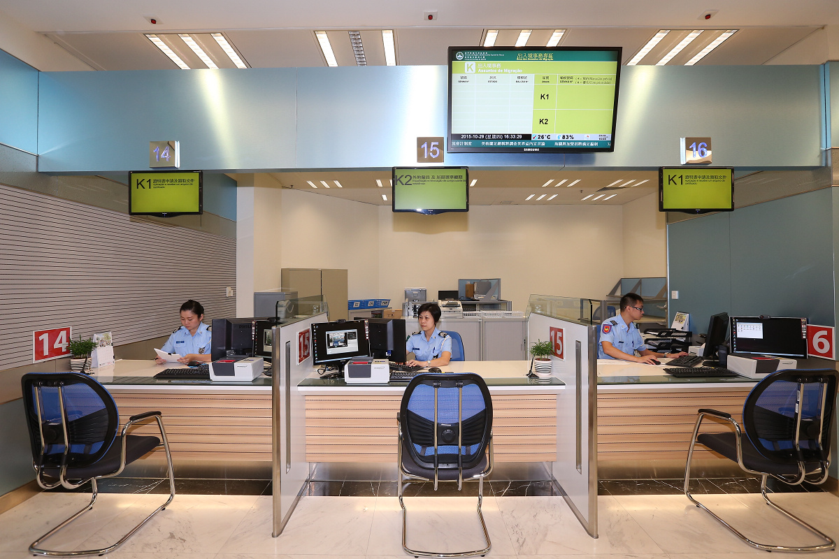 Em articulação com o princípio de “melhor servir a população” do Governo da RAEM, o Serviço de Migração do Corpo de Polícia de Segurança Pública vai introduzir três balcões de atendimento na area K do 2.o piso do Centro de Serviços da RAEM da Rua Nova da Areia Preta, em 3 de Novembro de 2015, prontos para servir 11 tipos de serviços, e como ponto de prestação de serviços na peninsula de Macau, irão fornecer determinados serviços administrativos mais convenientes ao público.