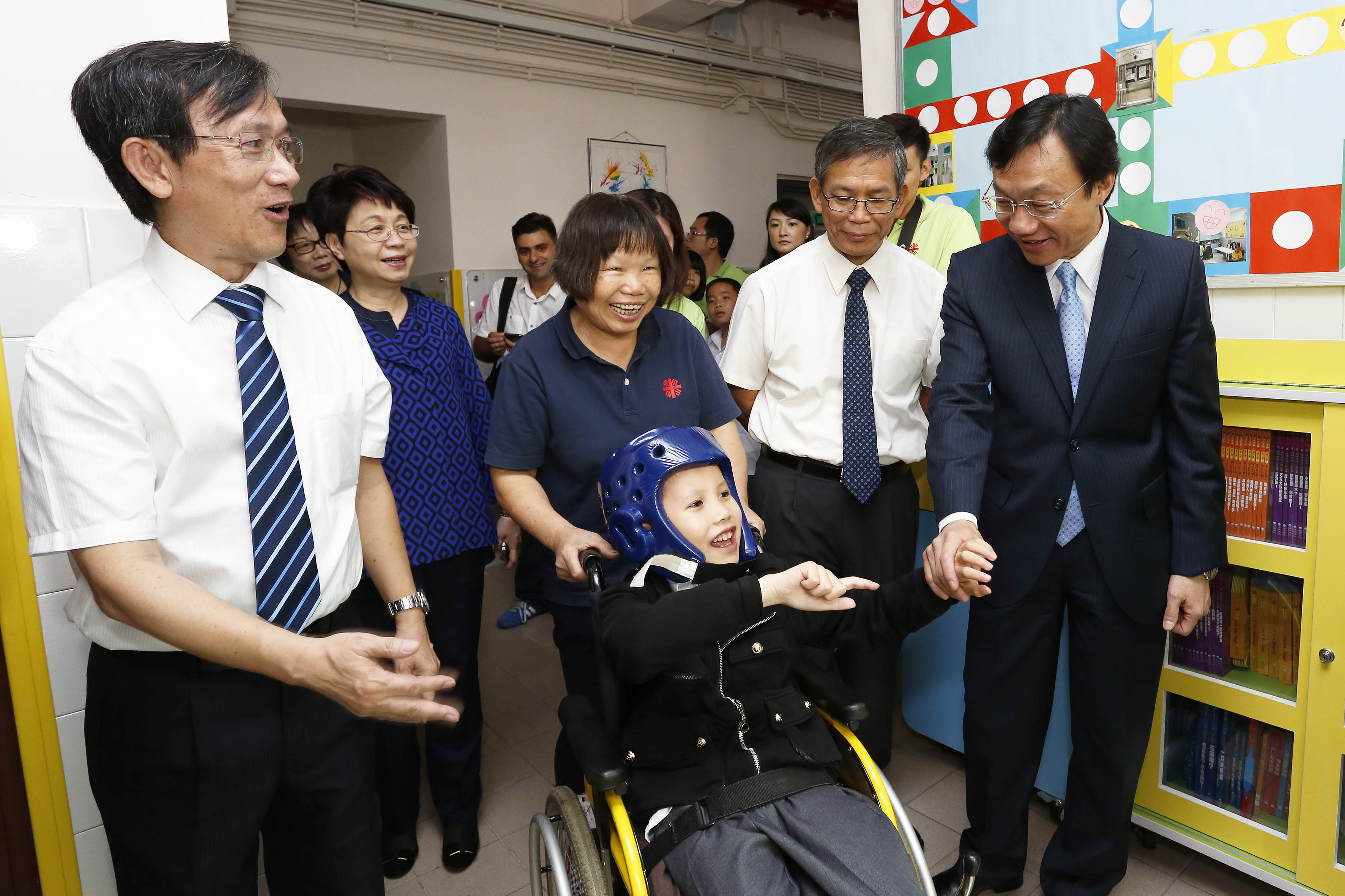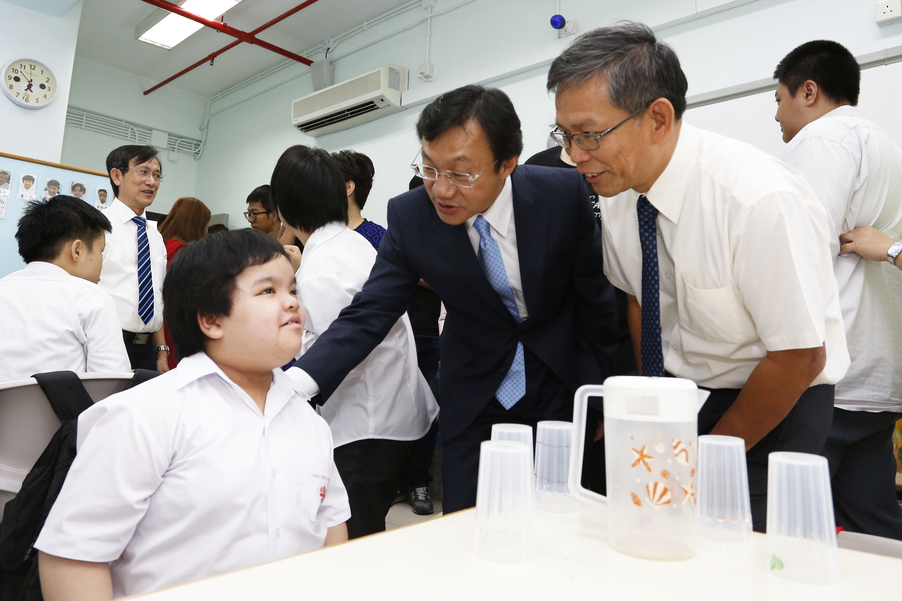 Alexis Tam assistiu aos espectáculos interpretados pelos alunos e observou, de forma minuciosa, as salas de terapia profissional e salas de aula, na companhia do chanceler da escola, Paul Pun e do seu director escolar, Cheung Shek Chiu, e aproveitou para entrar numa sala de aula para comunicar, de forma interactiva, com os docentes, o pessoal de apoio e os alunos.