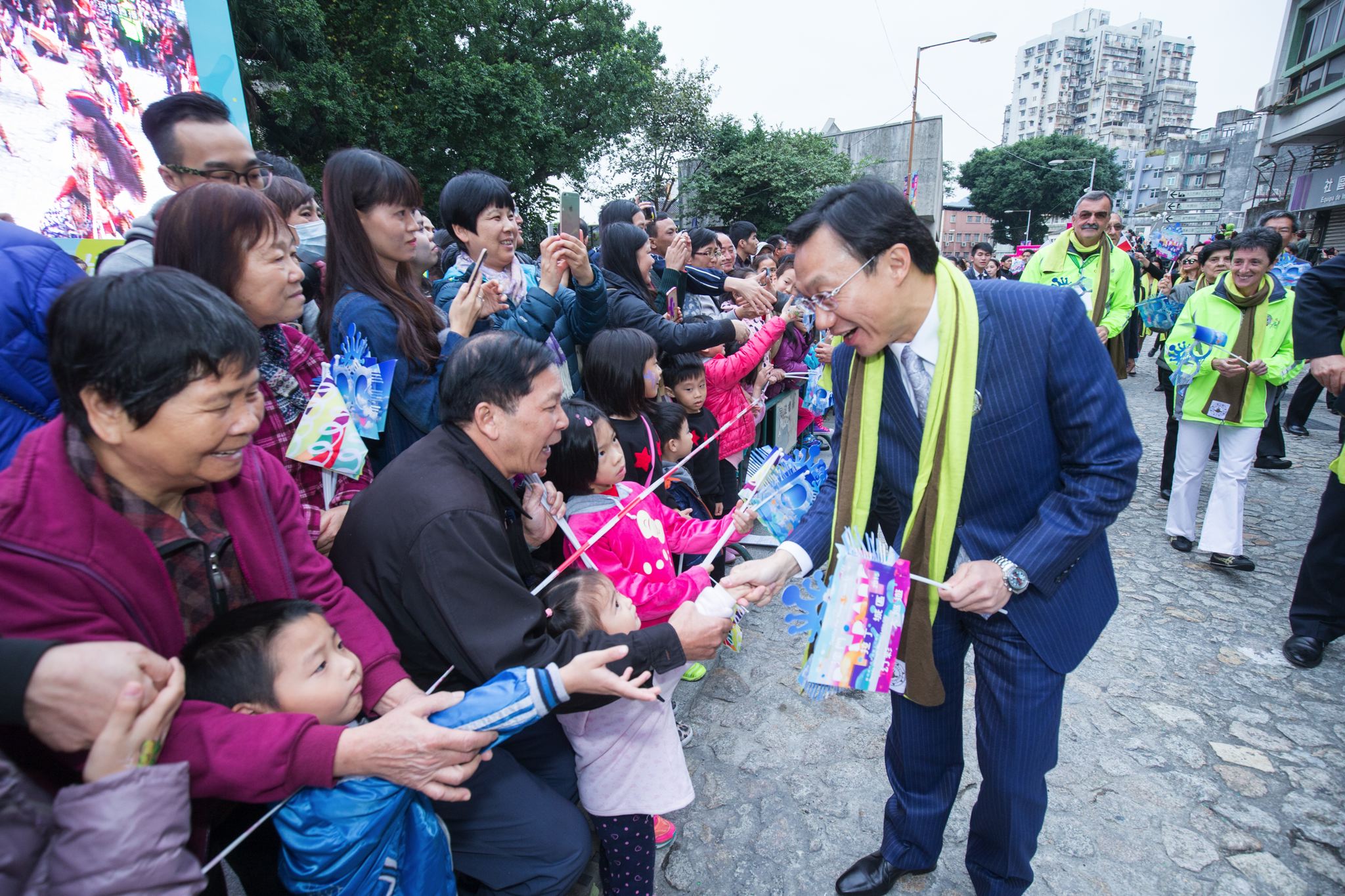 Excertos do evento são também transmitidos pela televisão de Hong Kong, alargando assim a visibilidade do Desfile. A TDM – Teledifusão de Macau S.A. transmite em directo o evento ao vivo na totalidade, tendo ainda sido instalados ecrãs para transmissão directa ao vivo no Largo do Senado, na Rotunda de Carlos da Maia, no Jardim da Areia Preta e na Rua de D. Belchior Carneiro. A estação televisiva TVB, de Hong Kong, irá transmitir no popular programa “Scoop”, uma apresentação do Desfile, no dia 14 de Dezembro, e um Especial Desfile no serão do dia 15 de Dezembro, no qual irá rever os destaques do evento. O Desfile contou ainda com uma série de actividades conexas, tais como o sorteio no Wechat do Instituto Cultural "Descubra o Tesouro e Habilite-se a Ganhar Bilhetes de Avião", do qual mais de seis mil pessoas tomaram parte, revelou-se muito populares junto do público.