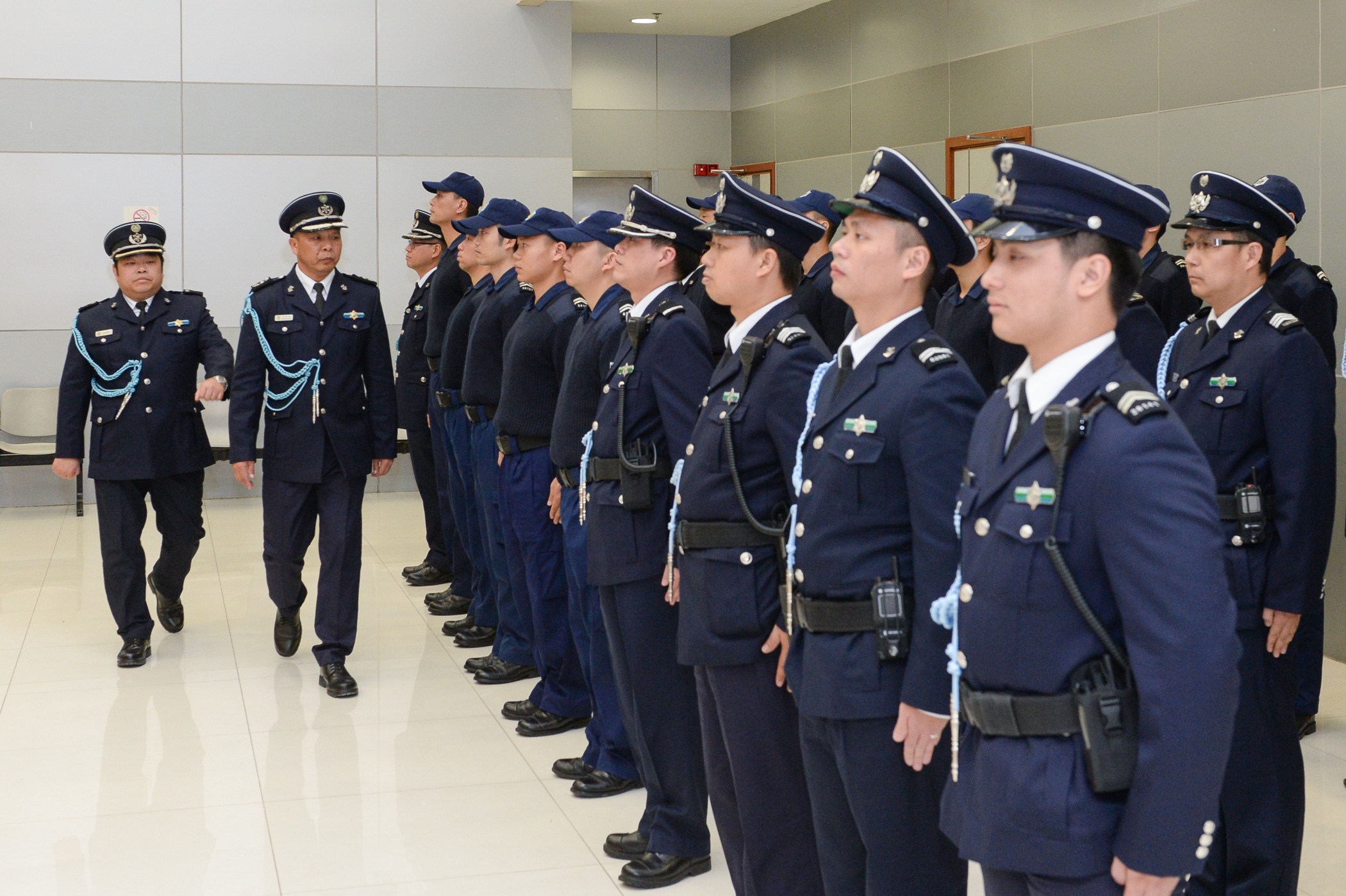 Na noite de hoje, nas instalações do Departamento de Inspecção Marítima dos S.A na Ilha Verde, teve lugar uma concentração do pessoal alfandegário, afecto ao patrulhamento marítimo. Durante a mesma o subdirector-geral dos Serviços de Alfândega, Sin Wun Kao apresentou os equipamentos do Centro de Comando. Posteriormente, o Chefe substituto desse Departamento, Leong Wa Kan, explicou ao pessoal as novas orientações relativas às áreas de serviço marítimo e as precauções a tomar durante o cumprimento da missão. De seguida, após a formatura de verificação, o pessoal alfandegário seguiu para os locais de serviço. Simultaneamente, o comandante da Flotilha de Meios Navais dirigiu-se, para fiscalização in loco, para a Zona A dos Novos Aterros Urbanos, do Terminal Marítimo de Pac On, na ilha da Taipa, e do Parque Industrial da Concórdia, na ilha de Coloane. Entretanto, estão concluídas três instalações temporárias de operações marítimas, as quais irão entrar em funcionamento conforme planeado, e as obras de melhoramentos também irão ser progressivamente iniciadas.