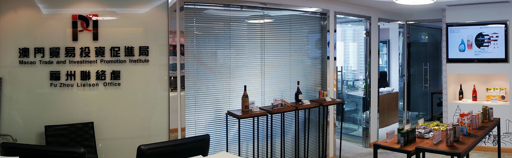 A “Zona de Exposição de Produtos Alimentares dos Países de Língua Portuguesa” está localizada na Sala No.1805, Fujian International Youth Communication, No.83 Center, Dongjie Street nas instalações do Gabinete de Ligação do IPIM em Fuzhou. Estão patentes no recinto na fase inicial, mais de 20 produtos alimentares dos países lusófonos, incluindo, nomeadamente, vinho, café, enlatados e azeite, actualizando-se mensalmente os produtos expostos. Além disso, na referida zona de exposição encontra-se ainda disponível parede de exposição multimédia e de imagens, textos, apresentando os produtos alimentares dos países lusófonos. Os empresários podem utilizar o computador da tela do toque para visitar o “Portal para a Cooperação na Área Económica, Comercial e de Recursos Humanos entre a China e os Países de Língua Portuguesa”, com acesso a mais informações sobre os “Três Centros” de Macau (Centro de Serviços Comerciais para as PME´s da China e dos Países de Língua Portuguesa, Centro de Distribuição dos Produtos Alimentares dos Países de Língua Portuguesa e Centro de Convenções e Exposições para a Cooperação Económica e Comercial entre a China e os Países de Língua Portuguesa).