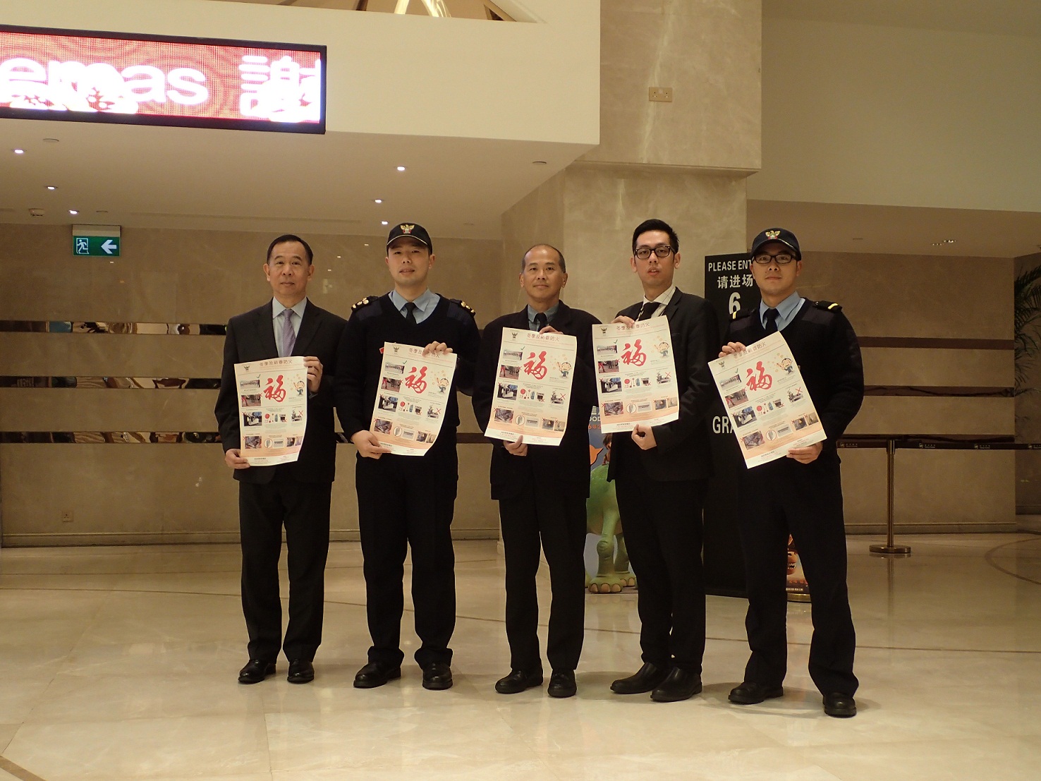 Foram realizadas, hoje (dia 3 de Fevereiro), acções de inspecção e divulgação aos cinemas de Macau, incluindo os Cinemas UA Galaxy, o Cinema da Torre de Macau, o Cinema Alegria e o Cineteatro Macau, com o objectivo de inspeccionar as condições de evacuação e as instalações de segurança contra incêndios dos estabelecimentos, para garantir o seu normal funcionamento. Nas quais, foram distribuídos artigos promocionais aos responsáveis dos cinemas, com a finalidade de elevar a sua consciência da prevenção contra incêndios.