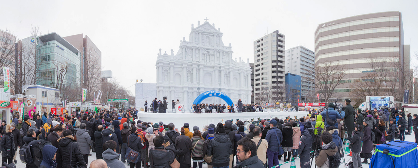 Este ano, a Direcção dos Serviços de Turismo (DST) participa pela primeira vez no Festival de Neve de Sapporo como Destino em Destaque, apresentando na zona central do festival uma escultura de neve das Ruínas de S. Paulo, com exibições de vídeo mapping, um Café de Macau, mostra de trabalhos de um fotógrafo de Macau actualmente a viver no Japão, um jantar de agradecimento, e tendo convidado ainda membros da Associação Culinária de Macau para participar num Concurso Internacional de Esculturas de Neve.