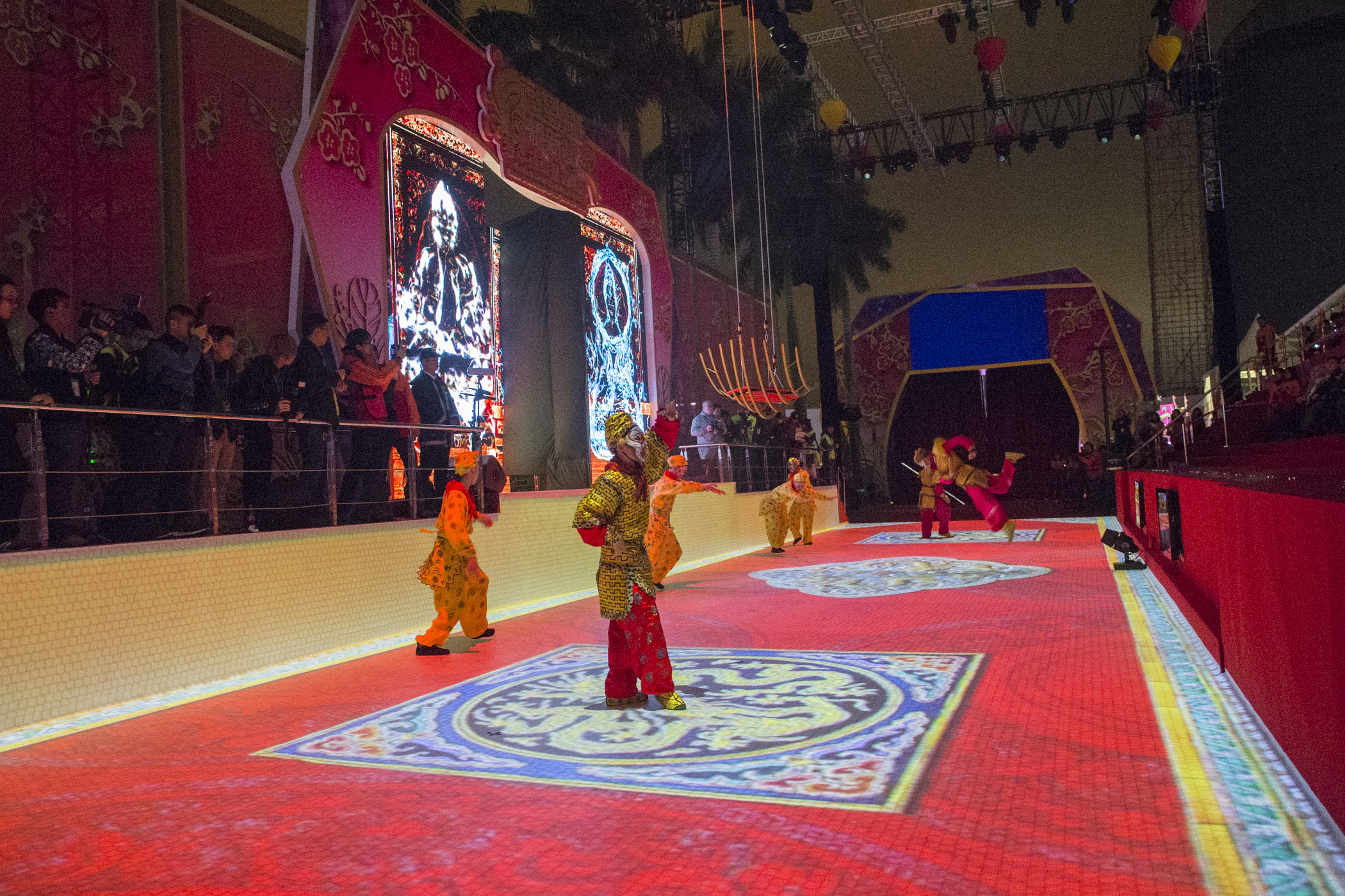 Este ano, realizou-se especialmente um espectáculo multimédia de abertura denominado “Rei Macaco Auspicioso”, onde através de efeitos especiais, o Rei do Macaco se desdobra, mostrando agilmente as suas habilidades. A parada tem como pano de fundo a história da vinda do Rei Macaco com a Corte Celestial a Macau para festejarem o Ano Novo Lunar, numa alusão ao signo do zodíaco chinês e ligação com a cidade. Na história, o Imperador de Jade quer visitar a Terra para se divertir durante o Ano Novo Lunar com a sua Corte Celestial. Ao descobrir que Macau realiza anualmente uma parada de celebração do Ano Novo Lunar, o Imperador de Jade ordena ao Rei Macaco que se desloque primeiro a Macau a fim de preparar a empolgante visita, seguindo depois a Corte Celestial, e encontrando-se todos na parada.