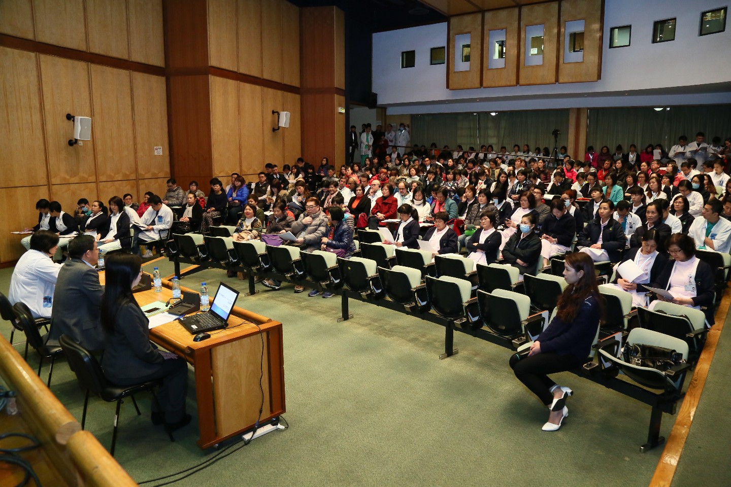 As sessões de esclarecimentos foram presididas pela coordenadora do Nucleo de prevenção e doenças infecciosas e vigilância de Doença (NDIV) do Centro de Prevenção de Controlo da Doença (CDC), Dra. Leong Iek Hou e pela a Responsável do Serviço de Ginecologia/Obstetrícia, Dra. Tong Van Ieng. O Dr. Lam Chong responsável pelo CDC esteve presente durante a sessão de perguntas e respostas.