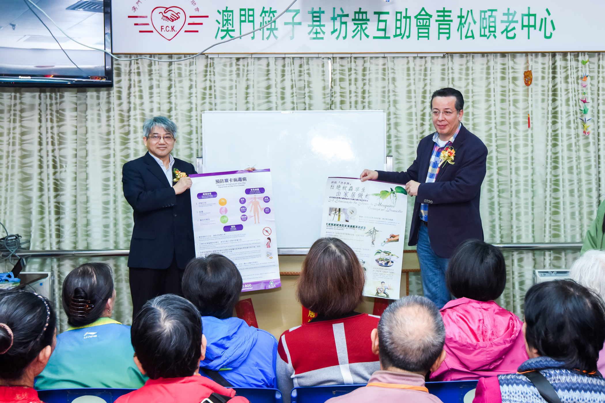 O Grupo de Trabalho para a Prevenção Contra a Febre Dengue realizou, hoje (dia 19), pelas 15h00, na zona de Lazer do Edf. Lok Yeong Fa Yuen, no Fai Chi Kei, a cerimónia de abertura da “Prevenção contra a Febre de Dengue e o vírus Zika”. Durante a actividade, foi realizada uma palestra temática intitulada “Métodos de sensibilização sobre a prevenção da Febre de Dengue e doença por vírus Zika” a fim de aprofundar os conhecimentos da população sobre estas duas doenças e adoptar correctamente as diversas medidas de prevenção.