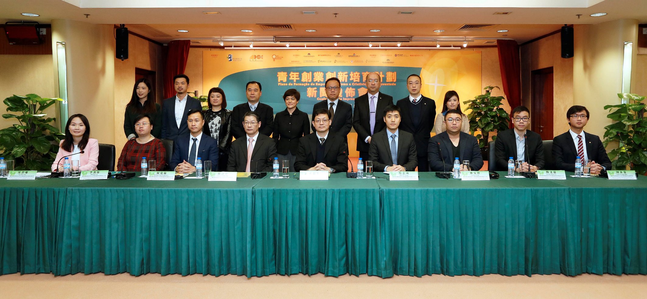 O subdirector da DSEJ, Lou Pak Sang, o chefe do Departamento de Desenvolvimento de Convenções e Exposições e das Actividades Económicas, Chan Weng Tat e os representantes da Comissão Preparatória de Formação de Empreendedorismo e Criatividade da Juventude (coordenador Ma Chi Seng, coordenador-adjunto Ho Ka Lon Francisco, coordenador-adjunto Carlos Lam, coordenadora-adjunta Helena Lei, coordenador-adjunto Ieong Man Un, secretária-geral Ng Pek San e vogal Chao Weng Hou) realizaram, em conjunto, no dia 23 de Março, pelas 11 horas, na DSEJ, uma conferência de imprensa para a apresentação do plano.