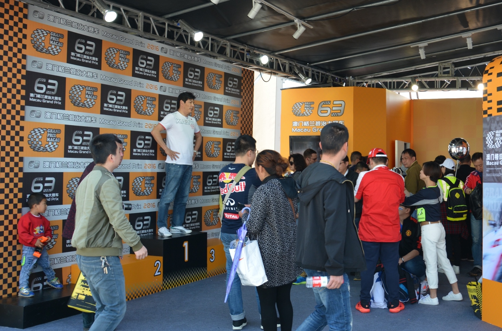 Considerando o convite do Grande Prémio de Fórmula 1 da China em Xangai, o Instituto do Desporto participou neste evento, através de uma exposição no local com o objectivo de promover o Grande Prémio de Macau. As cores temáticas da exposição promocional são em preto e amarelo, que simbolizam as cores do Grande Prémio de Macau, com um design dinâmico e exibem as fotografias do Grande Prémio, atraindo assim os expectadores com uma exposição colorida. Ademais, os panéis da exposição ilustram o programa emocionante do 63º Grande Prémio de Macau, a história e as lendas marcantes deste Evento. Através da oportunidade das actividades promocionais durante o Grande Prémio de Fórmula 1 da China em Xangai, o Instituto do Desporto tem o objectivo de intensificar o conhecimento do Grande Prémio de Macau para os cidadãos de Xangai e os fãs do desporto motorizado internacional, gerindo o aumento de espectadores para participarem como espectadores no Evento, e ao mesmo tempo, reforçar a relação com o Circuito de Xangai numa promoção conjunta do desporto motorizado.
