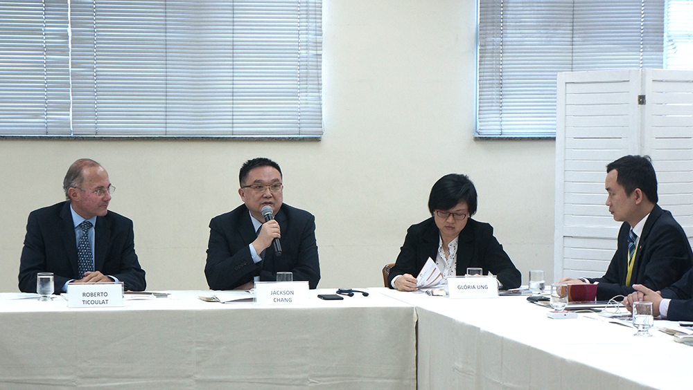 Na sessão de apresentação, o Presidente do IPIM, Dr. Jackson Chang disse que a economia Brasileira posiciona-se no primeiro lugar na economia da América Latina, e o Brasil coopera estreitamente com Macau, tendo o valor total do comércio bilateral atingido USD 40 milhões de dólares americanos em 2015, no contexto da boa economia da China e do Brasil. A função da plataforma de Macau já está incluída no plano estratégico global do 13º Plano Quinquenal da China, e o IPIM vai criar o Departamento de Promoção Económica e Comercial para os Mercados Lusófonos neste ano para seguir os trabalhos sobre a economia e a cooperação empresarial, disse o Presidente do IPIM, Dr. Jackson Chang durante a sessão, tendo ele convidado os empresários a participar na Conferência Ministerial do Fórum para Cooperação Económica e Comercial entre a China e os Países de Língua Portuguesa (Macau), a ser realizada em Novembro do corrente ano em Macau, e também na Conferência dos Empresários e dos Quadros da Área Financeira a ser organizada pelo IPIM. O Vice- Presidente da Associação Comercial de São Paulo, Dr. Roberto Ticoulat disse que a China é o importante parceiro comercial do Brasil e, com o forte apoio do Governo de Macau, já foi criado o seu escritório em Macau. Ele salientou que Brasil está cheio de oportunidades de negócio e são bem-vindos os empresários da China Continental, Brasil e Macau a iniciar cooperação económica nas áreas de produtos alimentares, aviação, entre outros.