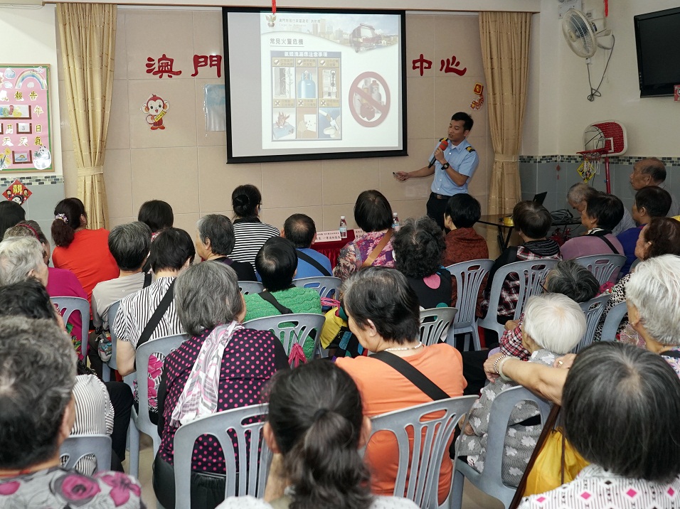 • Palestra sobre a prevenção contra incêndios destinada à Associação de Confraternização dos Moradores do Bairro do Antigo Hipódromo Areia Preta e Iao Hon de Macau