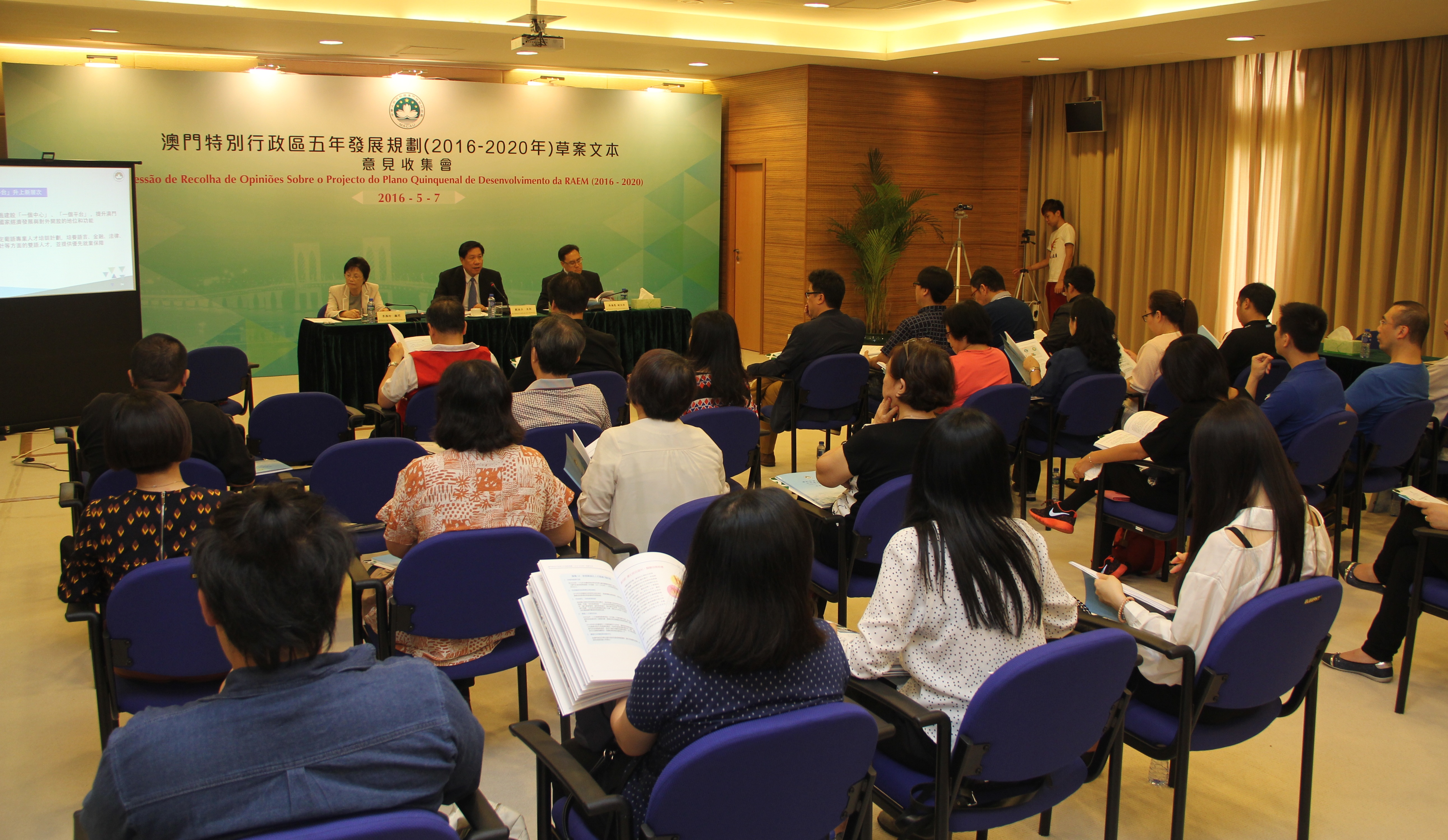 O projecto do Plano Quinquenal de Desenvolvimento da Região Administrativa Especial de Macau (2016-2020) foi já divulgado no passado dia 26 de Abril, tendo assim iniciado os trabalhos da recolha de opiniões, com a duração de 2 meses. O Plano Quinquenal é o plano geral de desenvolvimento da RAEM para os próximos cinco anos e o programa de acção de cooperação entre o Governo e a população. Assim, uma ampla auscultação junto dos diversos sectores da sociedade, unindo a sabedoria da população e reunindo as forças da sociedade, são factores muito importantes para a definição e concretização do Plano Quinquenal. Desta forma, o Gabinete de Estudos das Políticas, responsável pelos trabalhos da presente recolha de opiniões, realizou hoje (dia 7), no Gabinete de Estudo das Políticas, a sessão de recolha de opiniões destinada à Federação das Associações dos Operários de Macau.