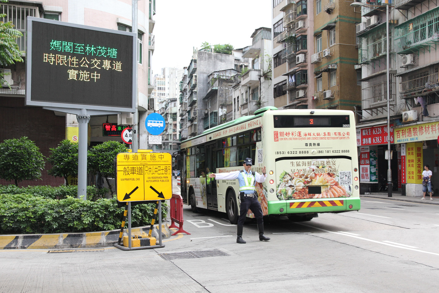 O corredor exclusivo para transportes públicos entre a Barra e a Doca Lam Mau em horários determinados entra em funcionamento a partir de hoje (dia 7), a título experimental, aos sábados e domingos, das 07h30 às 09h00 e das 16h30 às 1900, nas seguintes áreas: da passagem superior de peões na Rua do Almirante Sérgio ao Largo do Pagode da Barra, da passagem superior de peões na Rua do Almirante Sérgio à Praça de Ponte e Horta e da saída do Auto-silo Pak Kong na Rua da Ribeira do Patane à Avenida Marginal do Lam Mau. O corredor permite apenas a circulação de autocarros e veículos de emergência, podendo os outros veículos usar as faixas de rodagem existentes da Rua do Almirante Sérgio para dirigir-se à Barra e usar a Rua do Dr. Lorenço Pereira Marques e a Avenida de Demétrio Cinatti para dirigir-se à Doca Lam Mau.