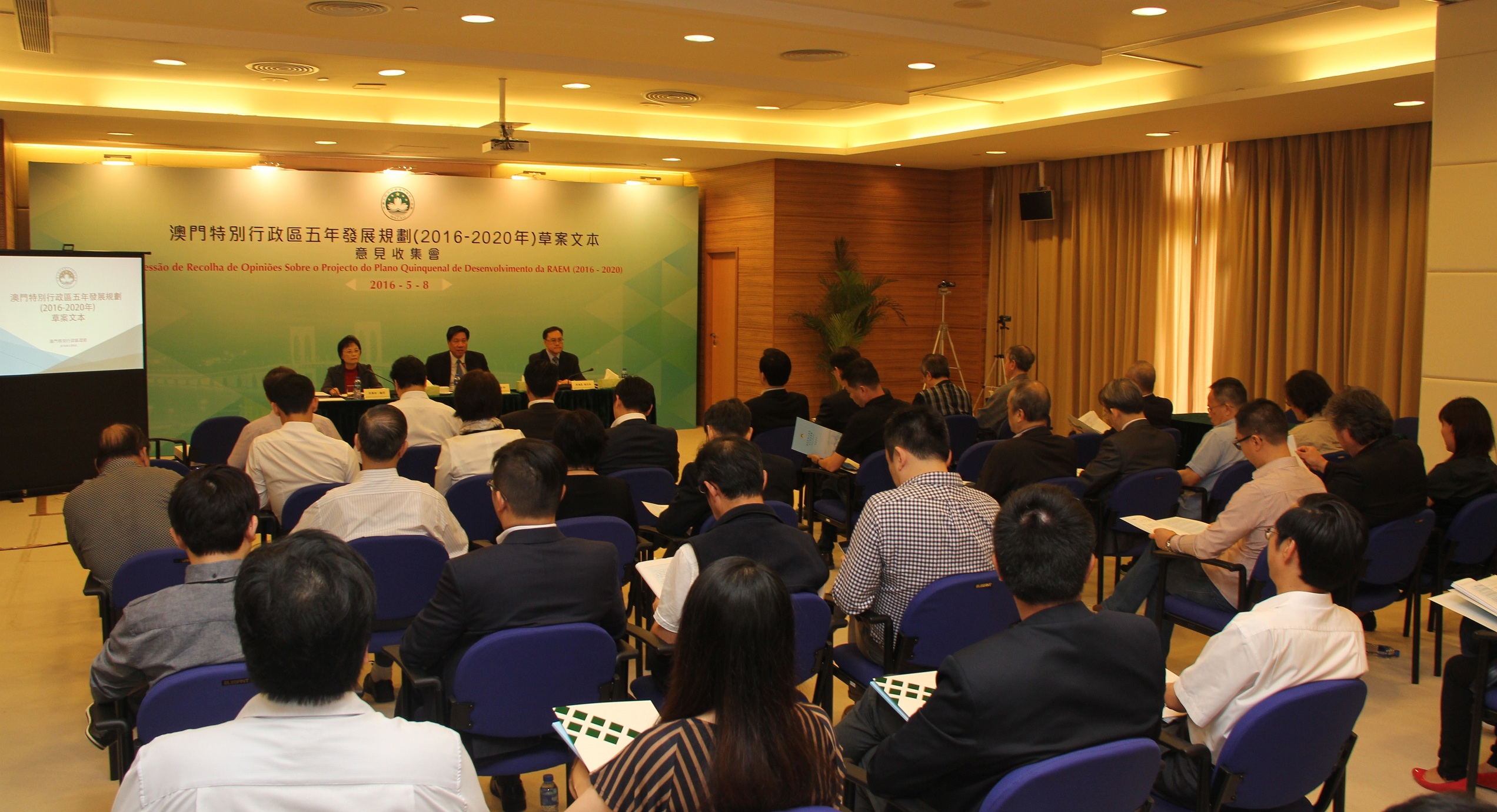 O projecto do Plano Quinquenal de Desenvolvimento da Região Administrativa Especial de Macau (2016-2020) foi já divulgado no passado dia 26 de Abril, tendo assim iniciado os trabalhos da recolha de opiniões, com a duração de 2meses. O Plano Quinquenal é o plano geral de desenvolvimento da RAEM para os próximos cinco anos e o programa de acção de cooperação entre o governo e a população. Assim, uma ampla auscultação junto dos diversos sectores da sociedade, unindo a sabedoria da população e reunindo as forças da sociedade, são factores muito importantes para a definição e concretização do Plano Quinquenal. Neste contexto, o Gabinete de Estudos das Políticas, responsável pelos trabalhos da presente recolha de opiniões, realizou hoje (dia 8), nas suas instalações, a sessão de recolha de opiniões destinada à União Geral das Associações dos Moradores de Macau, Associação Geral das Mulheres de Macau, Associação Geral dos Chineses Ultramarinos de Macau e a Federação da Industria e Comércio de todas as zonas de Macau.