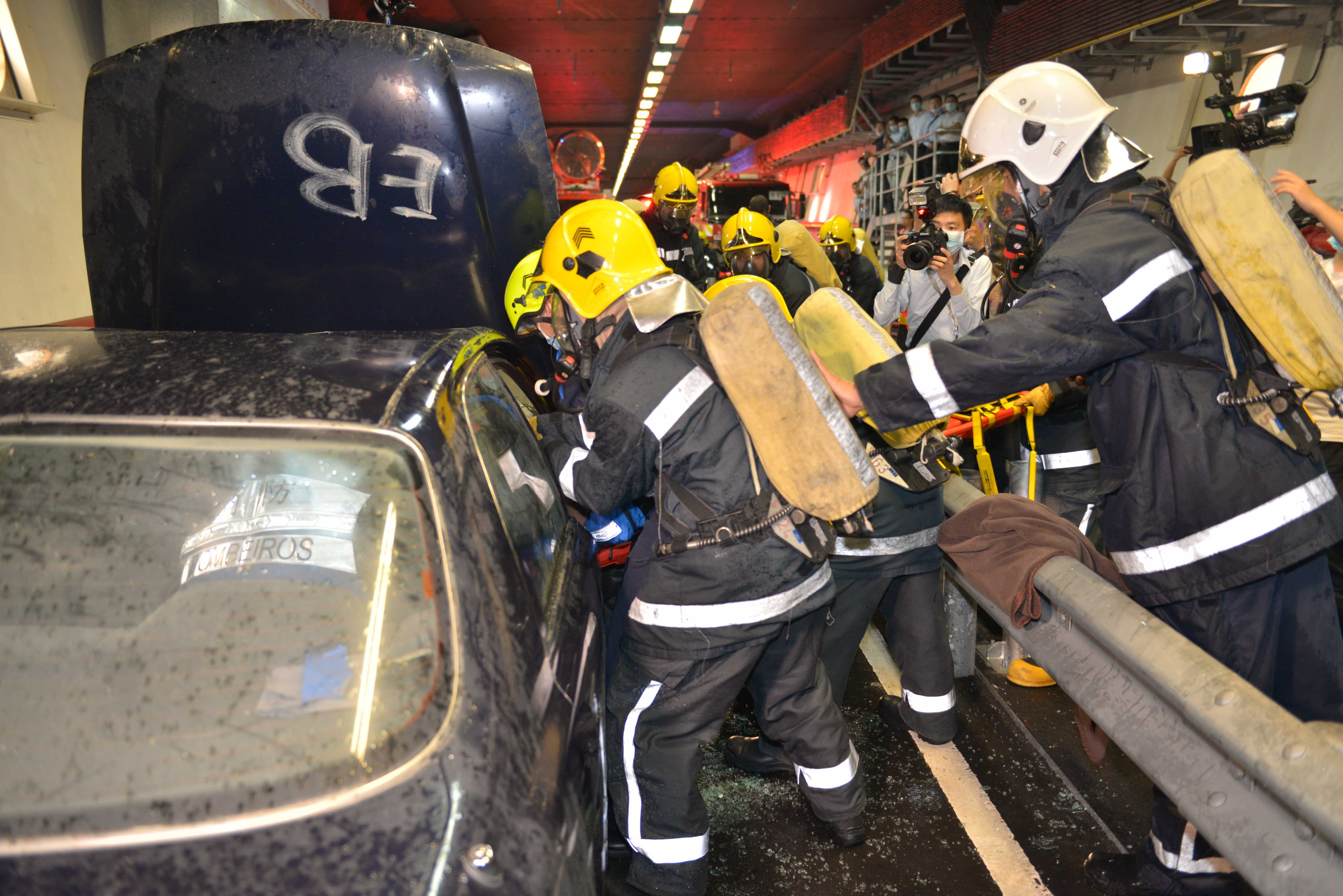 O exercício tem por cenário um acidente de viação durante a passagem do tufão, em que dois veículos a circular na faixa de rodagem do sentido de Taipa para Macau, no tabuleiro inferior da Ponte de Sai Van, embateram-se, ficando um deles em chamas na parte frontal, ficando o condutor preso na cabine com ferimentos graves. Após recebido o alarme, o CB enviou 11 viaturas de emergência, incluindo auto-bomba-tanques, pronto-socorro, viaturas de evacuação de fumo, ambulâncias, viaturas de transporte de equipamentos de emergência médica e autocarros de emergência médica, e 40 bombeiros, para socorrer os feridos e evacuar os ocupantes do sítio. Além disso, a Empresa Gestora da Ponte de Sai Van e a Pública enviaram também pessoal para prestar ajuda no local de sinistro.