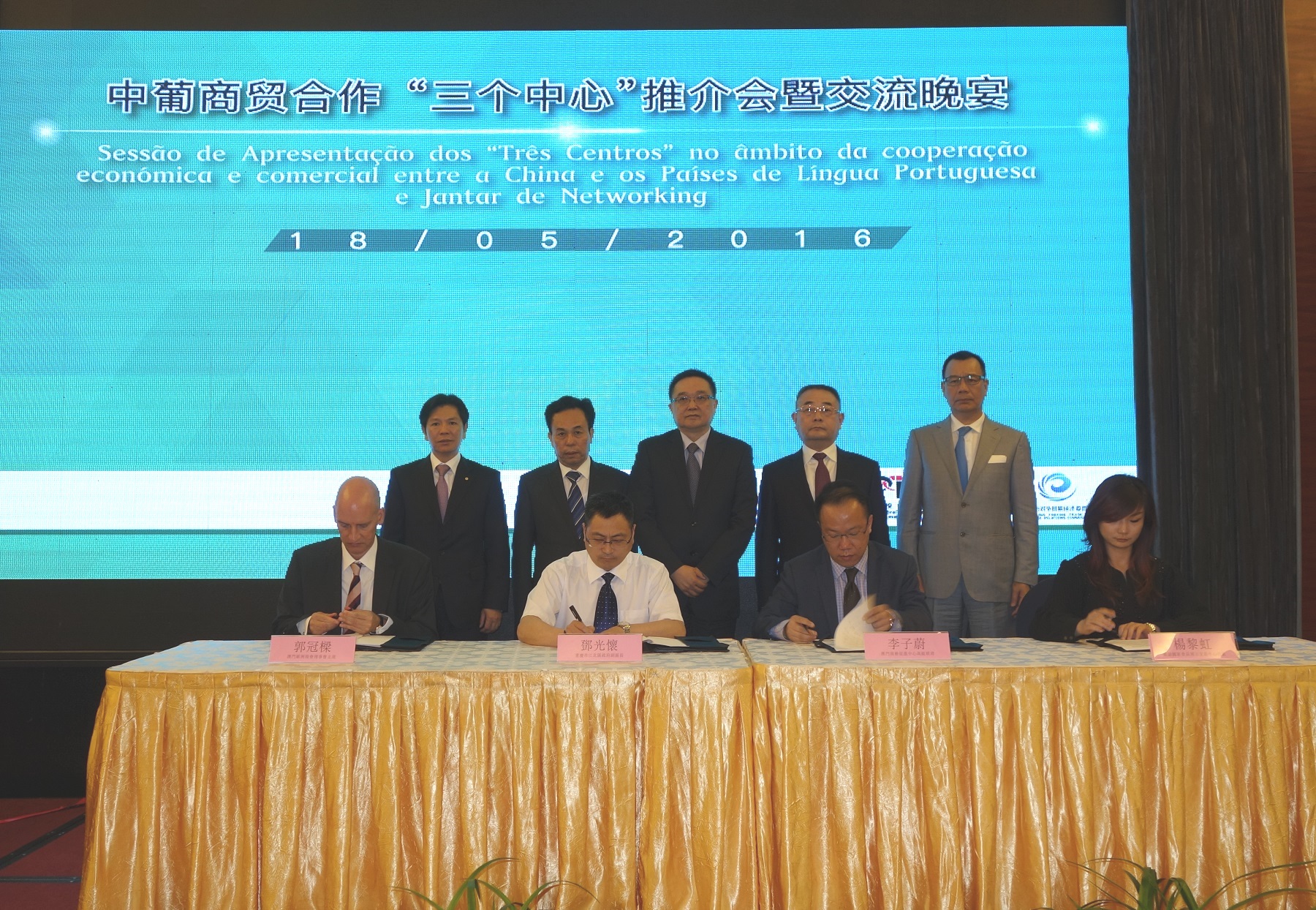 Durante o evento, o Presidente do IPIM, Dr. Jackson Chang, realçou que o melhoramento contínuo do ambiente de negócios em Moçambique e nos outros Países de Língua Portuguesa em 2016, com novas possibilidades de cooperação, oferece oportunidades ímpares para o aprofundamento da cooperação sino-lusófona. Durante o jantar, foram ainda apresentados aos convidados o conteúdo e as funções dos “Três Centros” no âmbito da Cooperação Comercial entre a China e os Países de Língua Portuguesa e do “Portal para a Cooperação na Área Económica, Comercial e de Recursos Humanos entre a China e os Países de língua Portuguesa”, tendo proposto aos convidados a melhor utilização da plataforma de Macau e, em articulação com a estratégia nacional de “expansão empresarial no exterior”, promover o aprofundamento da cooperação e aprendizagem mútua entre Macau e Chongqing, assente na boa colaboração já existente entre as partes. O subdirector da Comissão Económica e do Comércio Externo de Chongqing, Sr. Xiong Lin referiu que existe uma estreita cooperação económica e comercial entre Chongqing e Macau, e a exploração conjunta dos mercados lusófonos poderá trazer inúmeras oportunidades de negócios. O Subdirector-geral da sucursal de Macau do Banco da China, Sr. Ip Sio Kai apresentou a situação do desenvolvimento do sector bancário em Macau, bem como os seus negócios nos mercados lusófonos, focando-se especialmente nos serviços de liquidação em yuan, prestados aos Bancos dos Países de Língua Portuguesa. O CEO do Banco Nacional Ultramarino (BNU), Sr. Pedro Cardoso apresentou as redes e os negócios do BNU espalhados pelo mundo inteiro, salientando especialmente que as surcursais em Macau e nos diversos países de lingua portuguesa têm intenção de prestar serviços para a cooperação entre empresas da China e dos Países de Língua Portuguesa. O representante da Associação de Jovens Empresários Portugal-China (AJEPC), Sr. Paulo Alexandre Covas Coelho Barros apresentou a missão desta associação, bem como os trabalhos de apoio para o reforço da cooperação entre empresas da China e dos Países de Língua Portuguesa. Durante o evento, foram assinados 2 protocolos de cooperação, designadamente, o acordo de cooperação no desenvolvimento do sector financeiro entre a Câmara de Comércio Europeia em Macau e o Distrito de Jiangbei do Município de Chongqing, e o acordo-quadro de cooperação para a promoção do Centro de Distribuição dos Produtos Alimentares dos Países de Língua Portuguesa e Aprofundamento da Cooperação Económica e Comercial com os Países de Língua Portuguesa, entre o IPIM e a “Casa de Macau” em Chongqing. O evento promocional contou com a presença de cerca de 100 representantes do sector empresarial, tendo sido realizadas 43 sessões de bolsas de contacto, focadas na cooperação comercial entre Macau e Chongqing.
