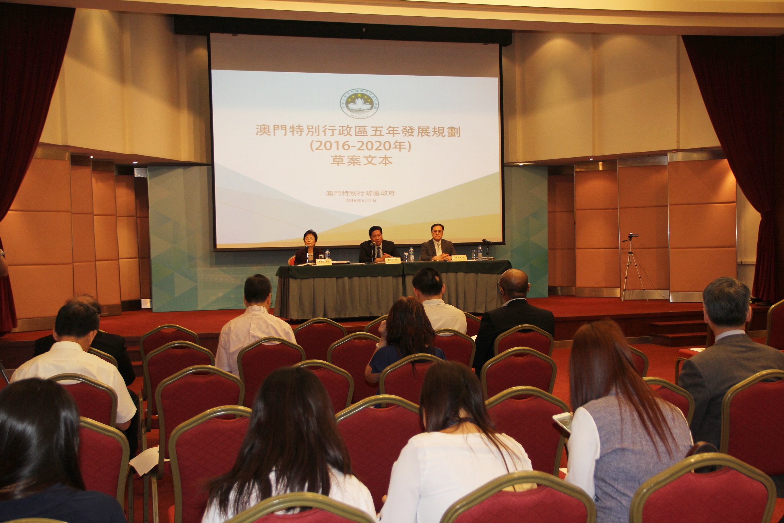 O projecto do Plano Quinquenal de Desenvolvimento da Região Administrativa Especial de Macau (2016-2020) foi já divulgado no passado dia 26 de Abril, tendo assim iniciado os trabalhos da recolha de opiniões, com a duração de 2 meses. O Gabinete de Estudos das Políticas, responsável pelos trabalhos da presente recolha de opiniões, realizou hoje (dia 1 de Junho) na Sala Flor de Lótus sita no 5.° andar do Edifício World Trade Centre, a sessão de recolha de opiniões destinada aos organismos consultivos da área do Secretário para os Transportes e Obras Públicas e directamente subordinados ao Chefe do Executivo. Lau Pun Lap, coordenador do Gabinete de Estudos das Políticas, Lei Ngan Leng, assessora do Gabinete do Chefe do Executivo, e Ng Hoi Ian, coordenador adjunto do Gabinete de Estudos das Políticas estiveram presentes na sessão e auscultaram as opiniões dos participantes.