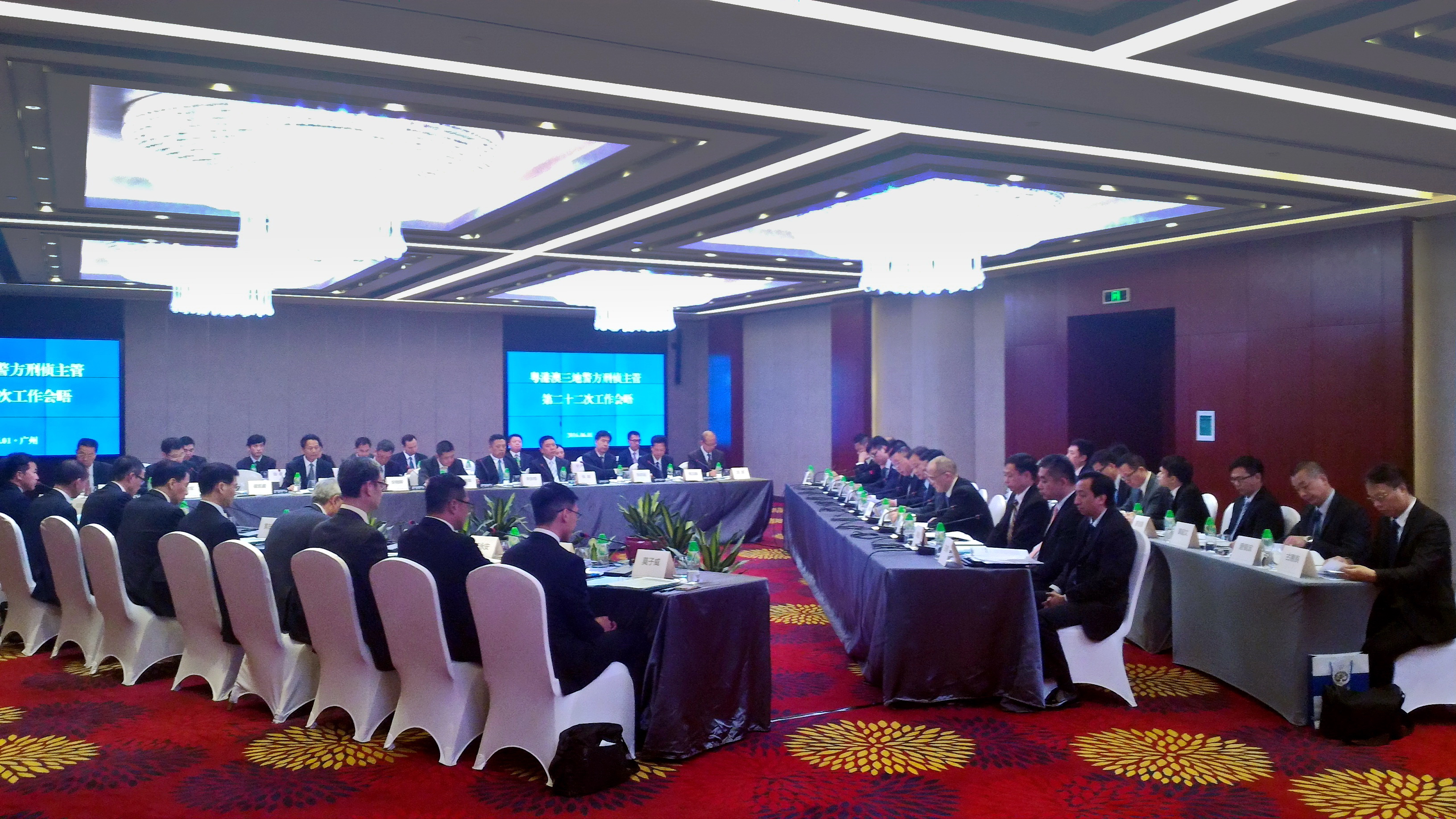 As delegações de Guangdong e Hong-Kong foram chefiadas, respectivamente, pelos senhores Director dos Serviços de Investigação Criminal da Directoria Provincial de Segurança Pública de Guangdong, Lin Weixiong, e Segundo-comandante da Polícia de Hong-Kong, Wong Chi Hung. A delegação da polícia de Macau foi composta, para além do Comandante-geral Ma Io Kun, pelos senhores Adjunto do Comandante-geral dos SPU, Mui San Meng, Subdirector da Polícia Judiciária (PJ), Sit Chong Meng, Segundo-comandante do Corpo de Polícia de Segurança Pública (CPSP), Chan Man Tak, Chefe do Departamento de Investigação de Crimes relacionados com o Jogo e Económicos da PJ, Chan Kin Hong, Chefe do Departamento de Investigação Criminal da PJ, Vong Chi Hong, Chefe do Departamento Policial das Ilhas do CPSP, Leong Chi Seng, Chefe do Departamento Policial de Macau do CPSP, Leong Hon San, entre outros.