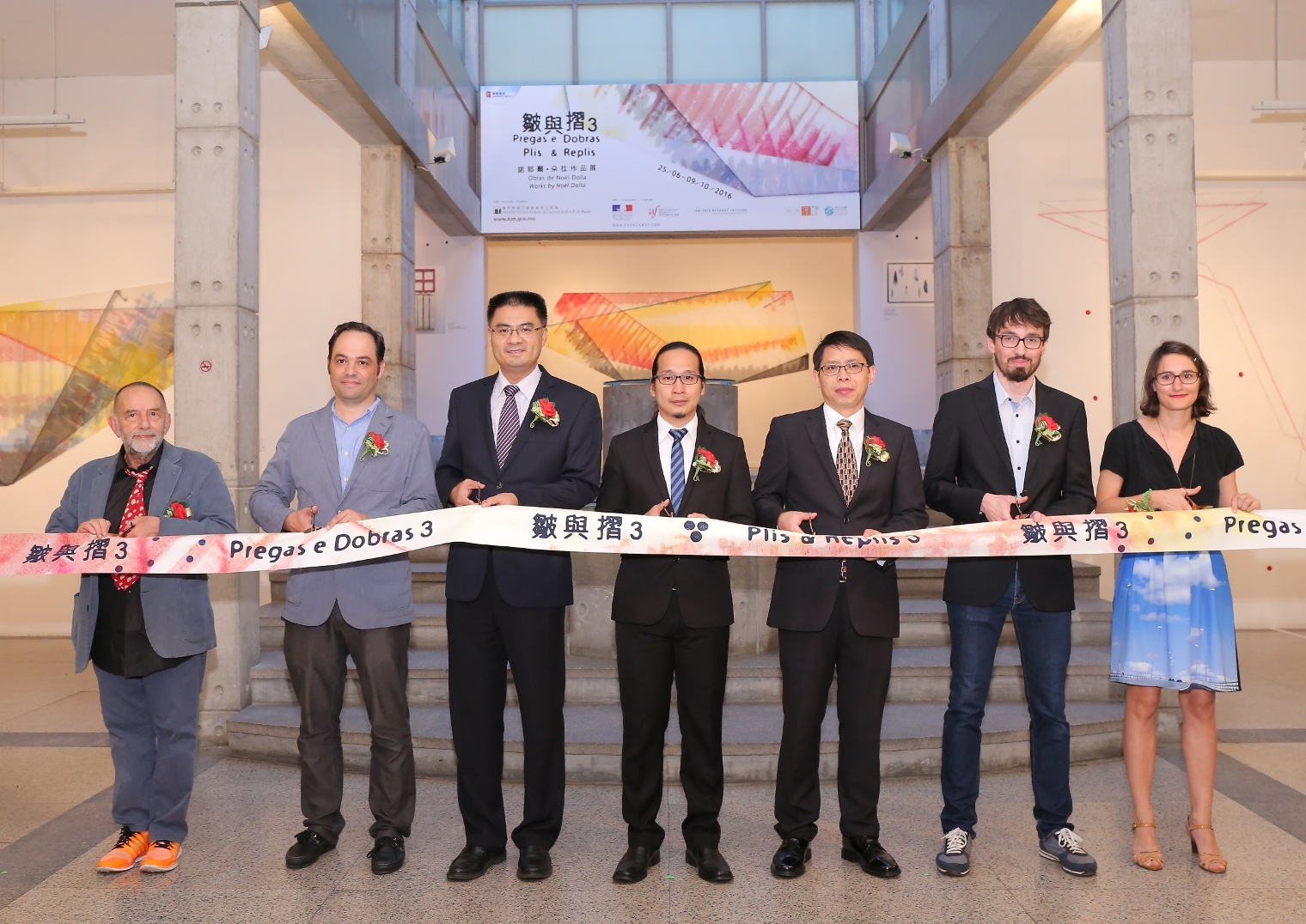 O Instituto Cultural (IC) organiza a exposição “Pregas e Dobras 3-Obras de Noël Dolla” na Galeria Tap Seac, que integra 32 obras do artista francês Noël Dolla. Integrada no projecto associado do festival Le French May deste ano, a exposição é organizada pelo IC e co-organizada pelo Consulado-Geral de França em Hong Kong e Macau, pela Alliance Française de Macau e pela Galeria Bernard Ceysson e foi inaugurada no dia 24 de Junho (Sexta-feira), pelas 18:30 horas, na Galeria Tap Seac. Estiveram presentes na cerimónia de inauguração o Vice-Presidente do Instituto Cultural do Governo da R.A.E. de Macau, Chan Peng Fai; o Subdirector do Departamento de Cultura e Educação do Gabinete de Ligação do Governo Popular Central na R.A.E. de Macau, Zhao Chuandong; Subchefe da Secção de Diplomacia Pública e Imprensa do Comissariado do Ministério dos Negócios Estrangeiros da República Popular da China na R.A.E. de Macau, Li Xiaoquan; o Director da Alliance Française de Macao, Xavier Garnier; o Representante da Galeria Bernard Ceyssonm, François Ceysson; o Artista da exposição, Noël Dolla e uma das curadoras da exposição, Élodie Antoine.