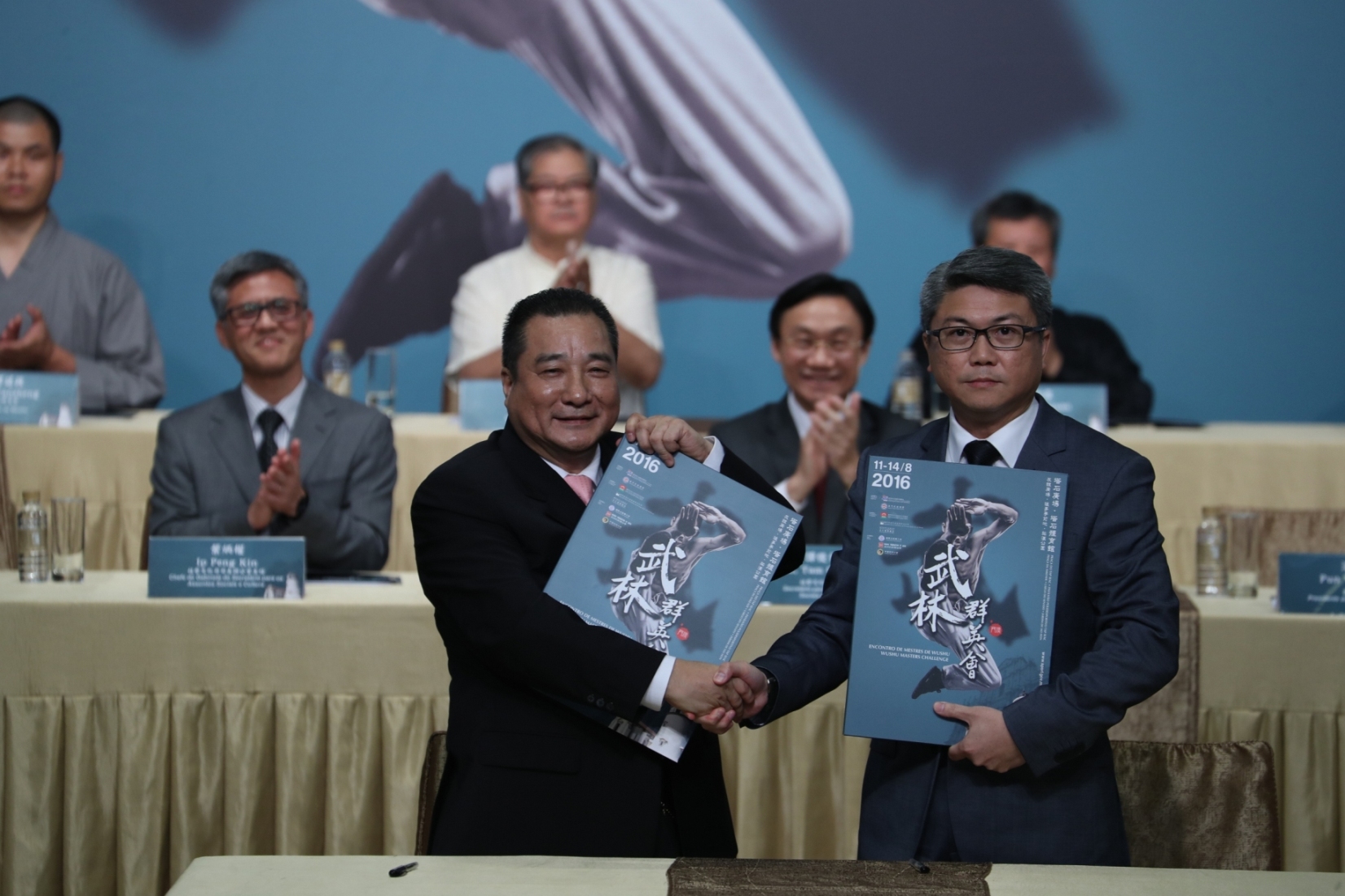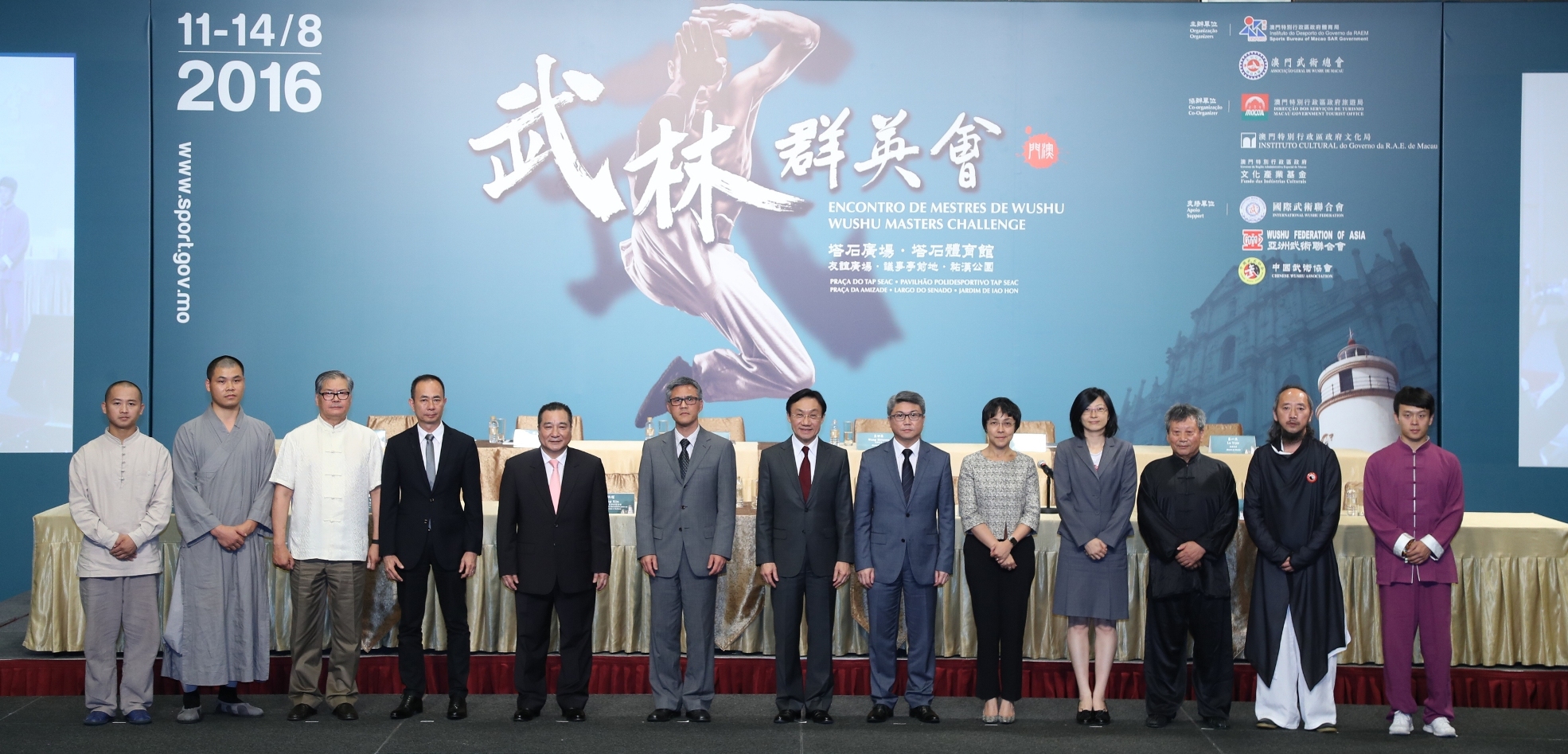 Durante a cerimónia, o Secretário para os Assuntos Sociais e Cultura Alexis, Tam Chon Weng, em representação da Organização do “Encontro de Mestres de Wushu”, apresentou as cartas-convite aos especialistas de wushu, nomeadamente Wu Guangyu, Wang Shiquan, Shi Yanzheng do Templo Shaolin, Liu Suibin, Shi Yanjun e Lu Yijie para participarem no referido acontecimento com vista à exibição aos cidadãos, turistas e atletas de wushu a arte quintessencial da cultura chinesa.