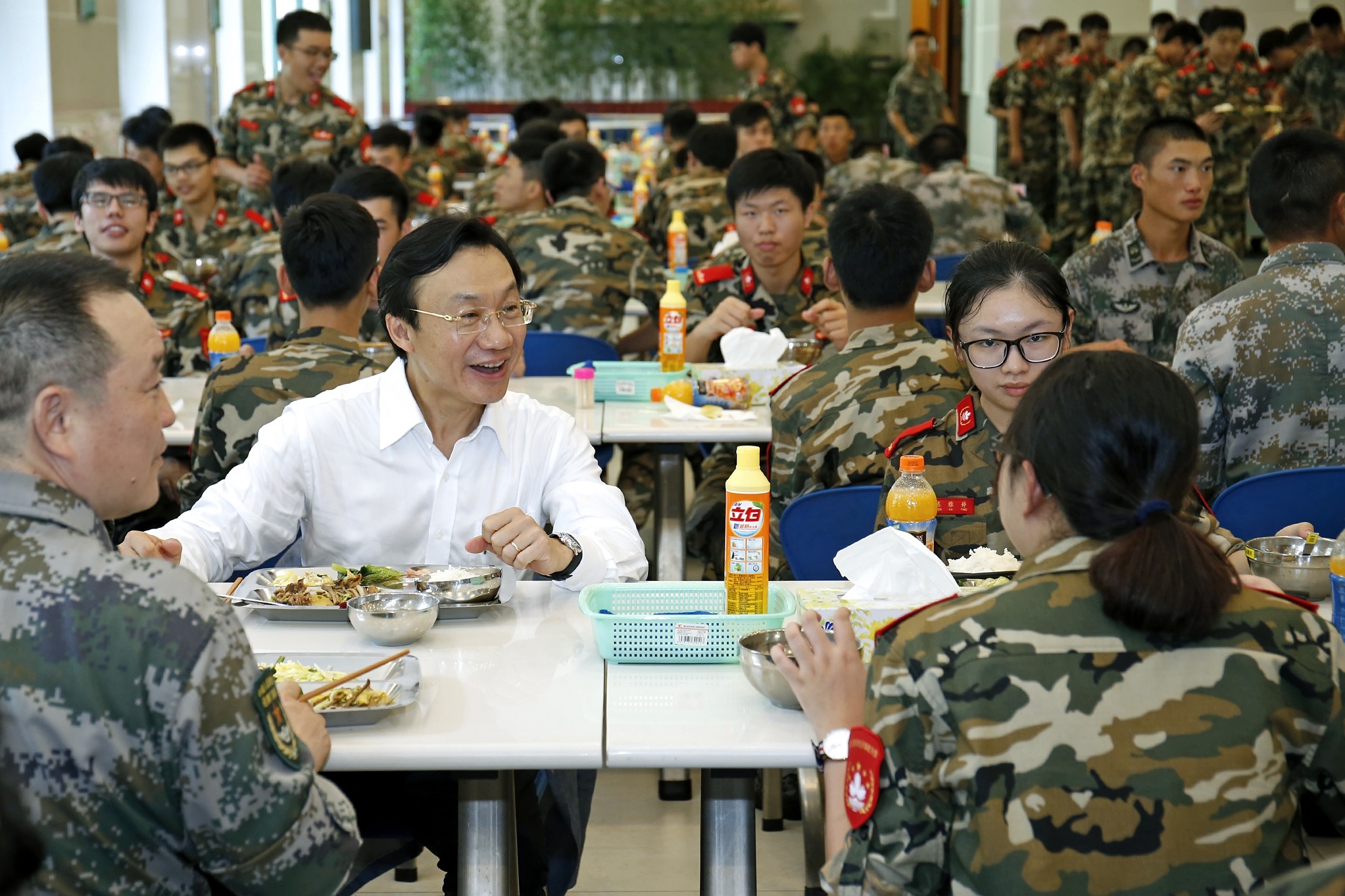 Por fim, o Doutor Alexis Tam teve um almoço com o comandante da Guarnição em Macau, coronel Wang Wen e os estudantes.