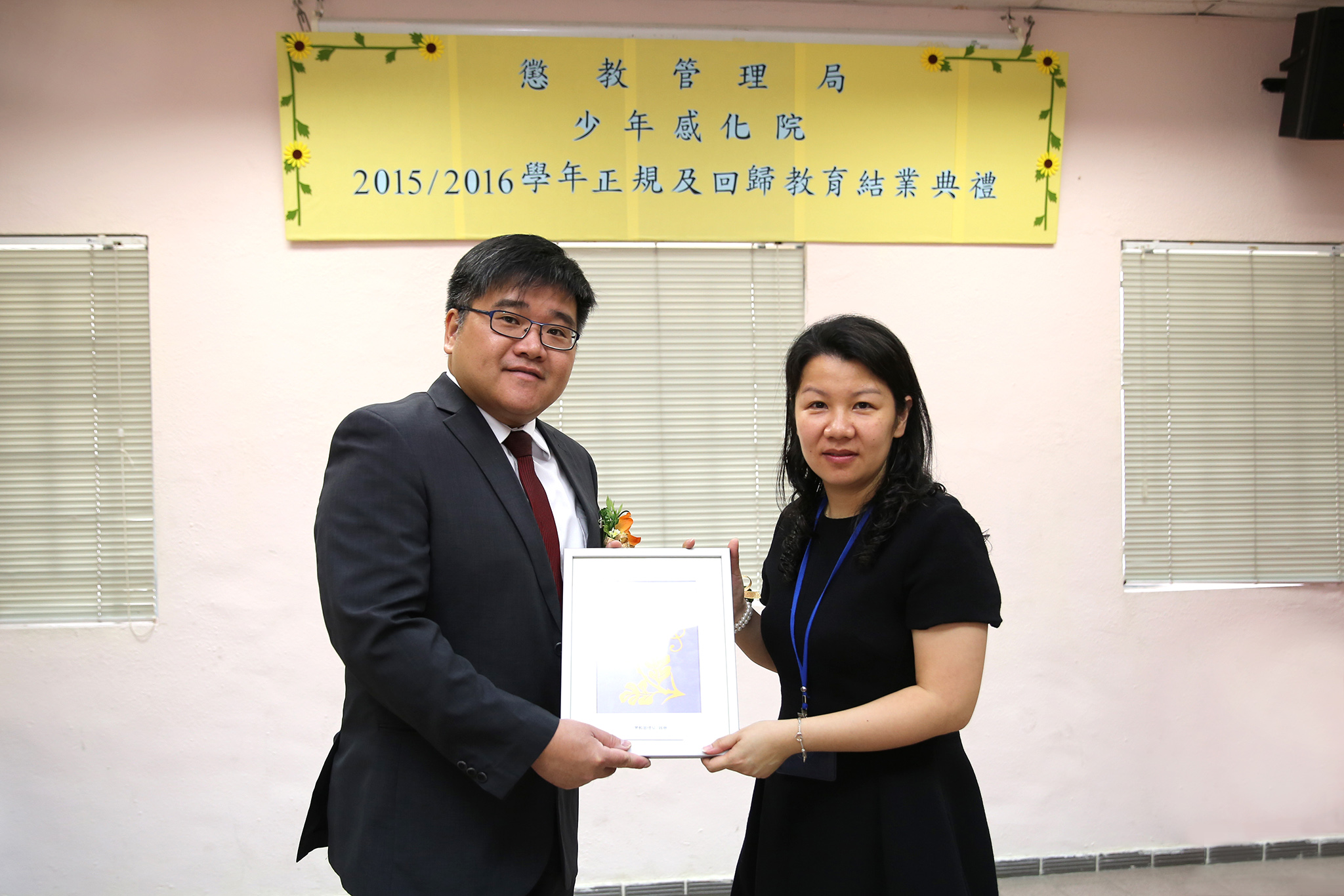 Em colaboração com a Direcção dos Serviços Correccionais e as institutições de ensino locais, a DSC promove cursos de educação no Instituto de Menores, apoiando os jovens internados na persecução dos estudos. No ano lectivo de 2015/2016, os cursos de educação regular e do ensino recorrente contaram com a participação de 14 jovens internados, tendo sido atribuído o certificado de conclusão do ensino secundário geral a 4 jovens. Estiveram presentes no evento, a Directora do Instituto de Menores – Yu Pui Lam, o Chefe da Divisão de Extensão Educativa da Direcção dos Serviços de Educação e Juventude – Kong Ngai, o Director e Director-Adjunto da Escola Estrela do Mar – Vong Pio e Lei Wang, os professores da Escola Estrela do Mar e da Escola Primária Luso-Chinesa “Sir Robert Ho Tung”, bem como os técnicos sociais e monitores do Instituto de Menores.