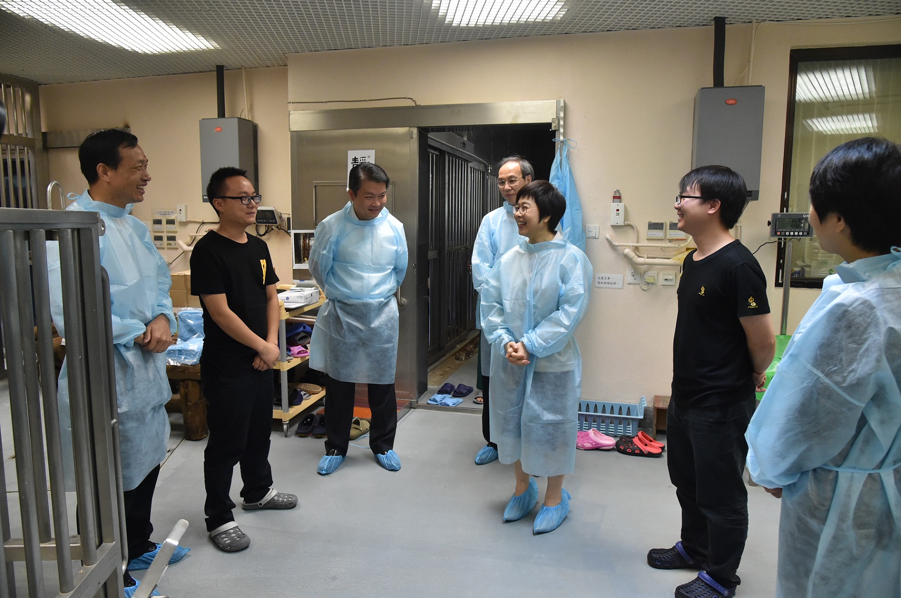 A Chefe do Gabinete da Secretária para a Administração e Justiça, Iao Man Leng, o Presidente substituto e o Vice-Presidente do Conselho de Administração do IACM, Lo Veng Tak e Lei Wai Nong, respectivamente, e o Administrador Leong Kun Fong acompanharam a Secretária para a Administração e Justiça, Chan Hoi Fan, na visita ao par de gémeos, ambos machos. Durante a visita, a secretária inteirou-se ainda da situação dos Pandas Gigantes “Kai Kai”e “Xin Xin”, oferecidos pelo Governo Central. A Secretária para a Administração e Justiça agradeceu aos membros da equipa os esforços e empenho que depositam no tratamento dos pandas gigantes e encorajou-os a continuarem com esses cuidados intensivos para o bem-estar dos gémeos. Chan Hoi Fan tem esperança que, no futuro, quando os cidadãos de Macau conhecerem os pandas bebés estes lhes irão trazer felicidade e alegria.