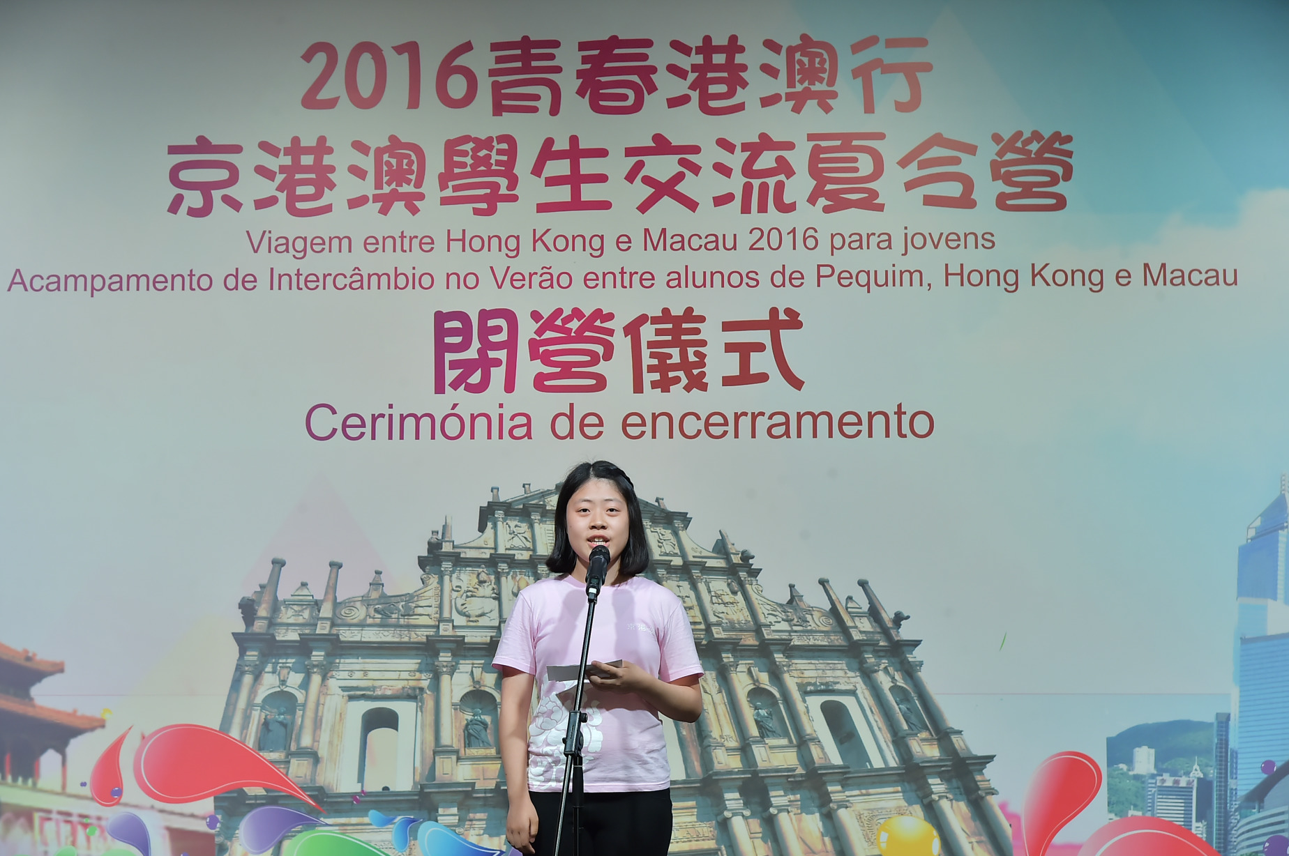 Com o intuito de cultivar nos alunos de Macau, de uma forma contínua, o amor pela Pátria, reforçar ainda mais a comunicação entre os alunos de Pequim, Hong Kong e Macau, enriquecer as suas vidas durante o Verão e ampliar os seus horizontes, o Conselho de Educação de Pequim, a Direcção dos Serviços de Educação e Juventude (DSEJ) da Região Administrativa Especial de Macau (RAEM) e os Serviços de Educação da Região Administrativa Especial de Hong Kong (RAEHK) organizaram, em conjunto, a “Viagem entre Hong Kong e Macau 2016 para jovens – Acampamento de intercâmbio no Verão entre alunos de Pequim, Hong Kong e Macau”, que se realizou com sucesso em Hong Kong e Macau, entre 23 e 29 de Julho.