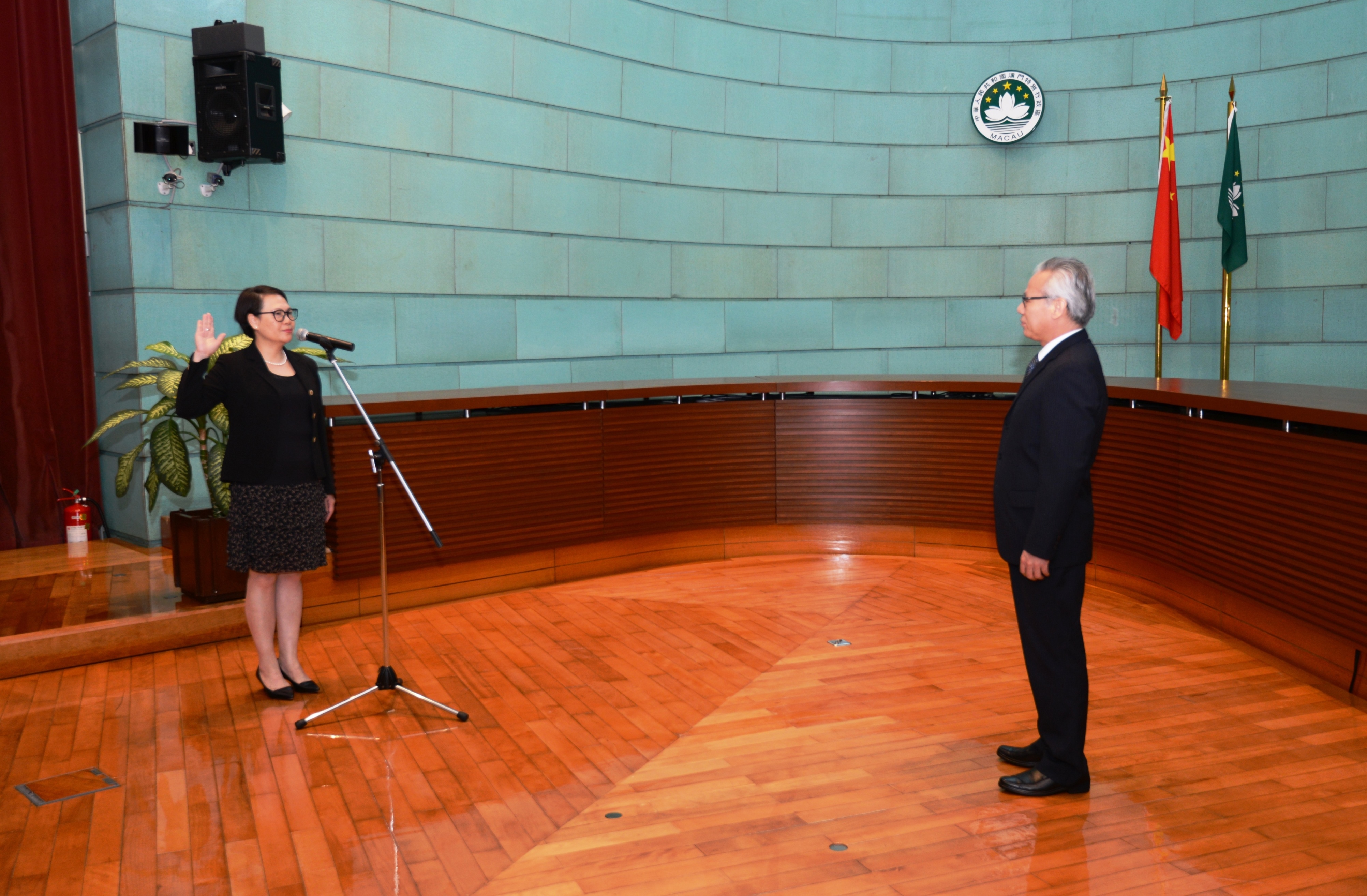 Perante o Presidente do Tribunal de Última Instância, Dr. Sam Hou Fai, que presidiu à cerimónia, e com a presença dos juízes, funcionários da justiça e trabalhadores do Gabinete do Presidente do Tribunal de Última Instância que testemunharam a cerimónia, a chefe Chan Iok Lin prestou juramento, dizendo que desempenharia fielmente as funções e envidaria todos os seus esforços para o trabalho.