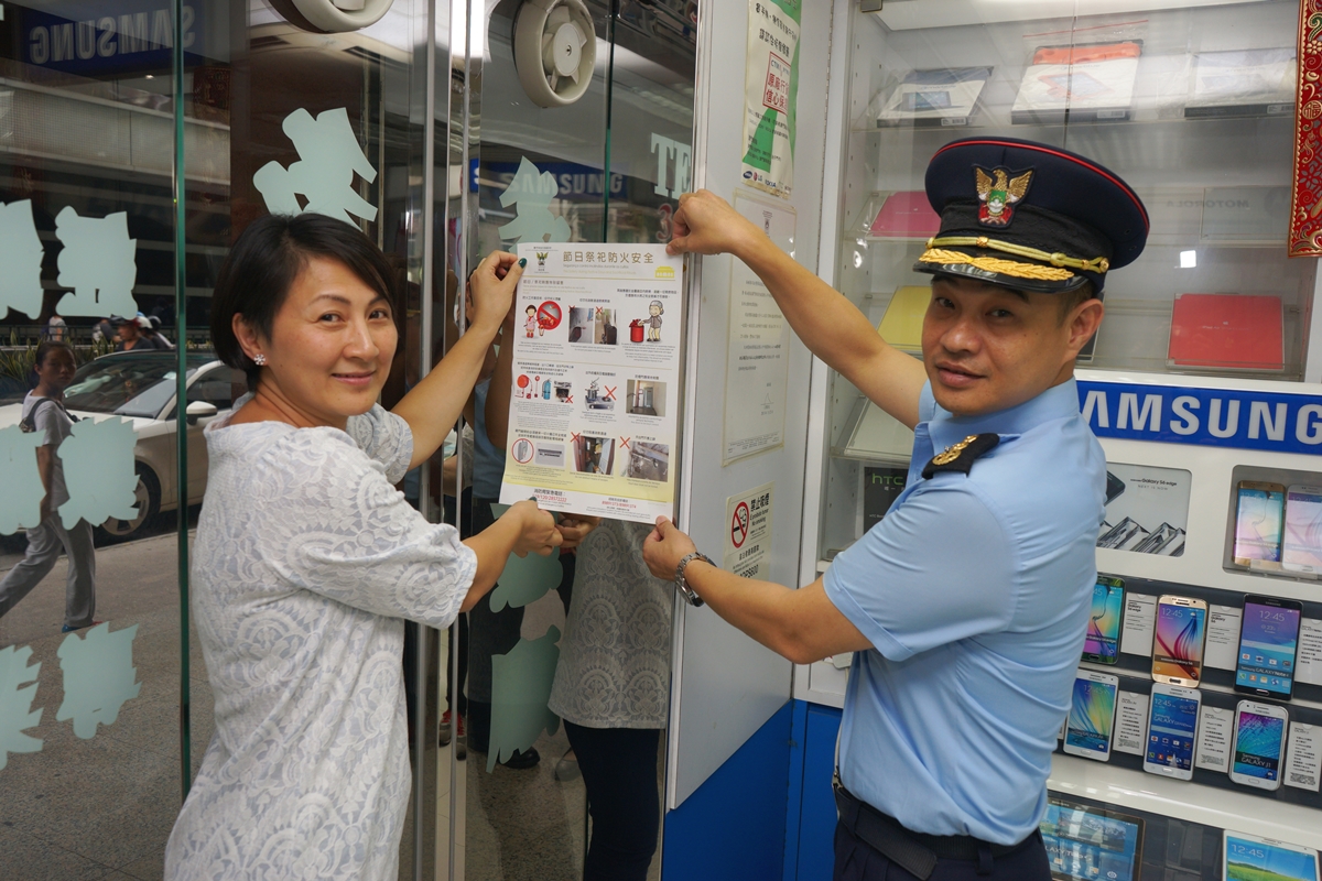 Após a palestra, esta Corporação distribuiu os panfletos e cartazes sobre a segurança contra incêndios, o fogão a gás e a evitação do uso abusivo de ambulâncias aos cidadãos nas zonas da Freguesia da Sé, que obteve o apoio dos voluntários da AGMM, com vista a aumentar a consciência de protecção contra o fogo dos residentes através desta actividade de propaganda.