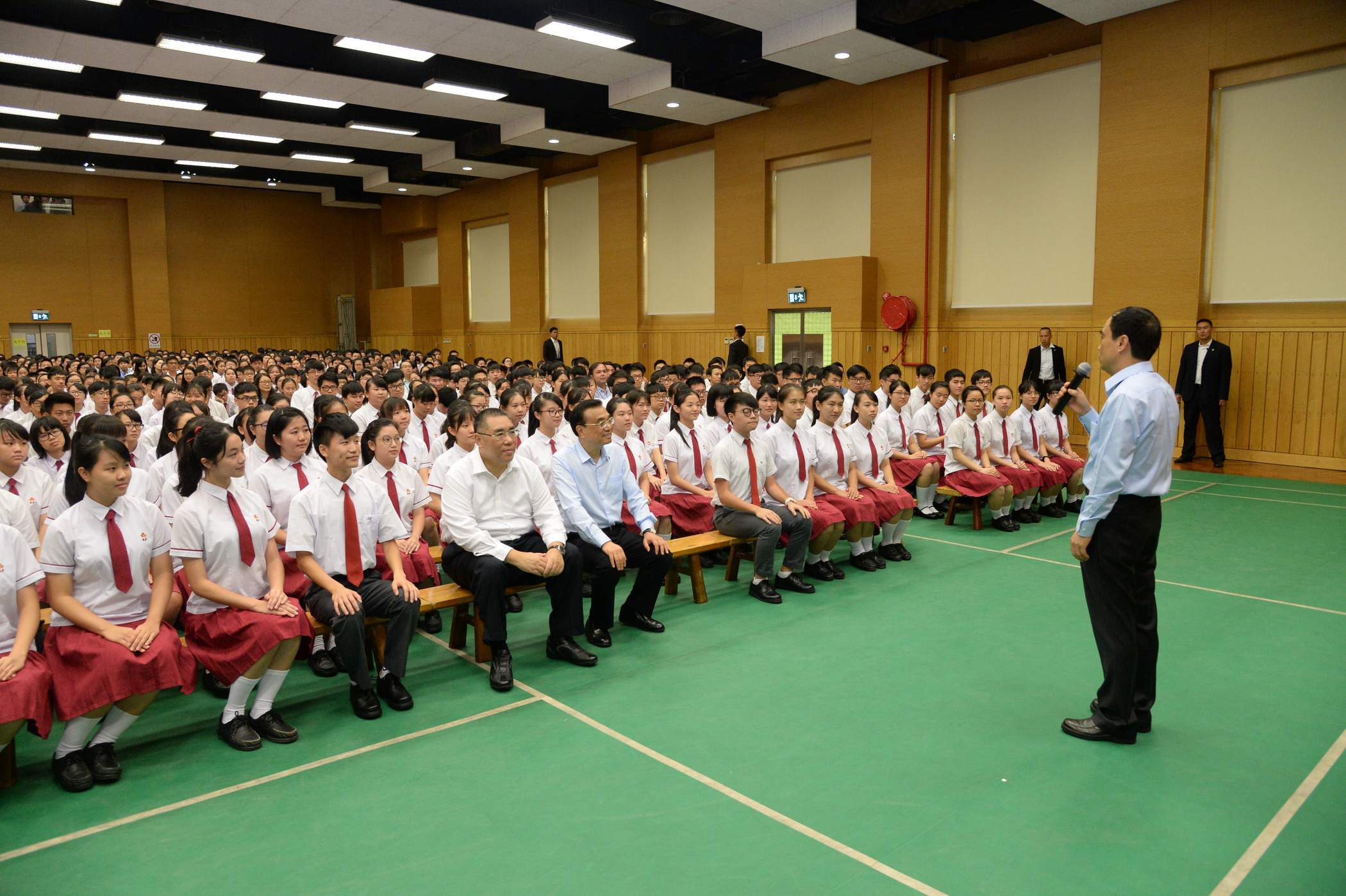 Ao falar com professores e alunos da Escola, o Li Keqiang expressou o seu agrado na performance musical e elogiou a Escola pela sua tradição e espírito de “Amor à Pátria, amor a Macau”.