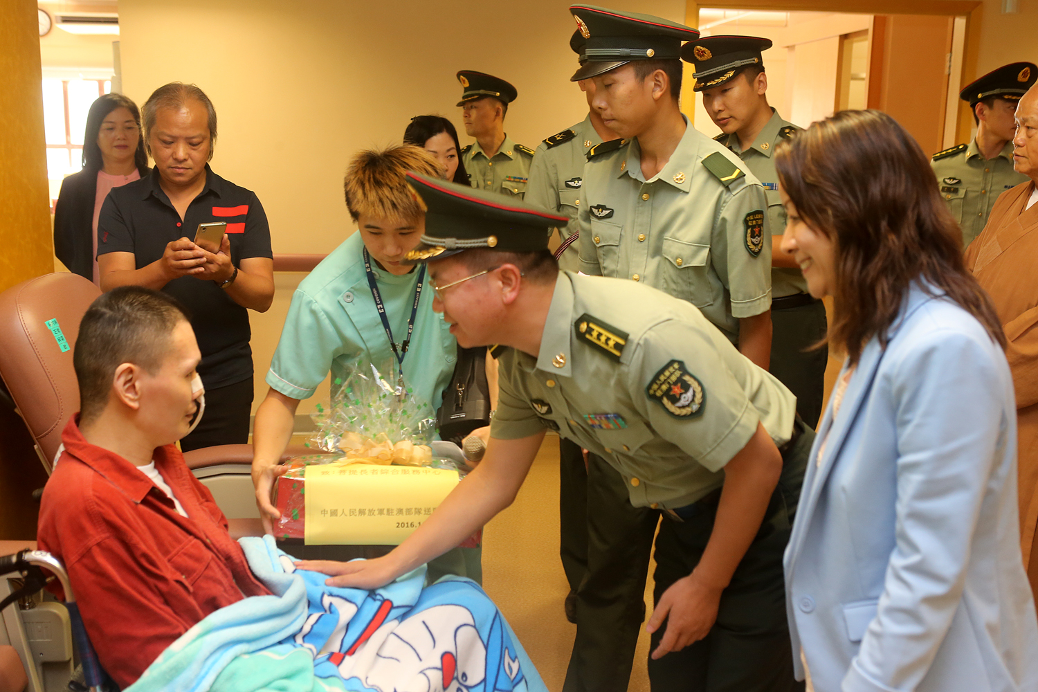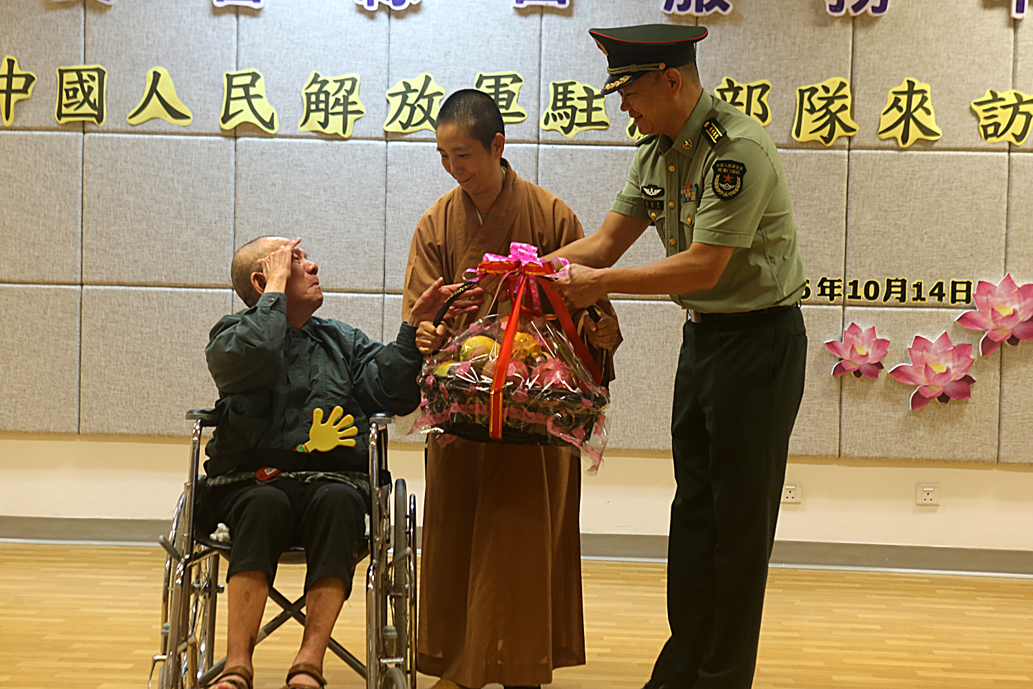 No dia 14 de Outubro, à tarde, o subchefe do Estado-Maior, coronel Gao Zhijun, e mais 19 militares, acompanhados pela presidente do Instituto de Acção Social (IAS), Vong Yim Mui, e alguns dos seus trabalhadores, visitaram o Complexo dos Serviços de Apoio ao Cidadão Sénior para apresentarem cumprimentos aos seus utentes.