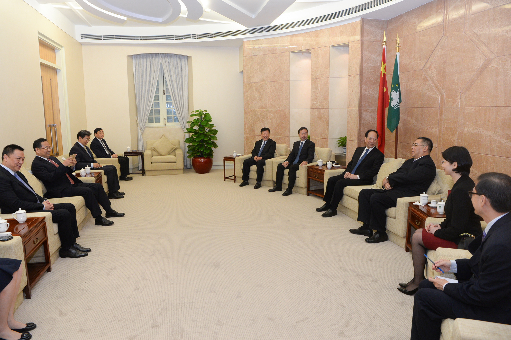 O Chefe do Executivo, Chui Sai On, teve um encontro, na Sede do Governo, com o governador da província de Jiangsu, Shi Taifeng, no qual trocaram opiniões sobre o aprofundamento dos trabalhos preparatórios para a construção do parque de cooperação Jiangsu-Macau e de como aproveitar ao máximo o papel de Macau como plataforma entre a China e os países de língua portuguesa.