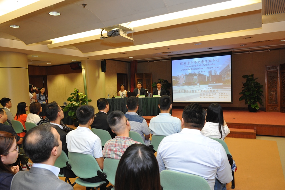No intuito de apresentar, as funções do Centro Juvenil de Actividades Culturais, Recreativas e Desportivas do Tap Seac, aos membros do Conselho de Juventude e das associações juvenis de Macau, a Direcção dos Serviços de Educação e Juventude realizou, no dia de 29 de Outubro, às 14:30, na Salão de Conferências Confúcio, no 1º andar do edifício-sede da DSEJ, uma sessão para apresentação das funções deste Centro Juvenil, tendo participado na mesma, vários membros do Conselho de Juventude e representantes das associações juvenis. Vários participantes levantaram questões, nesta sessão, que foram respondidas pelos oradores, que interagiram com diferentes interlocutores, que tiveram reacções entusiásticas durante a sessão.