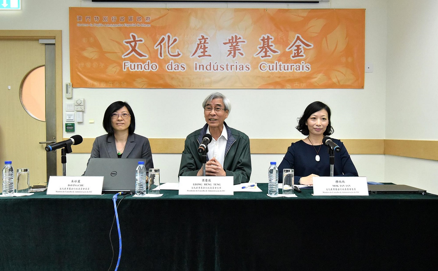 O Fundo das Indústrias Culturais (FIC) realizou, no dia 8 de Novembro, terça-feira, às 15H30, uma sessão de convívio de chá com a imprensa, na sede sita na Av. Xian Xing Hai n.º 105, Centro Golden Dragon, 14.º Andar A, Macau, tendo o Presidente do Conselho de Administração, Leong Heng Teng e os membros, Dra. Davina Chu e Dra. Mok Ian Ian apresentado informações sobre a situação da prestação de apoio financeiro nos anos económicos de 2014 a 2016, trabalhos de divulgação e as orientações para os trabalhos a desenvolver na próxima fase.