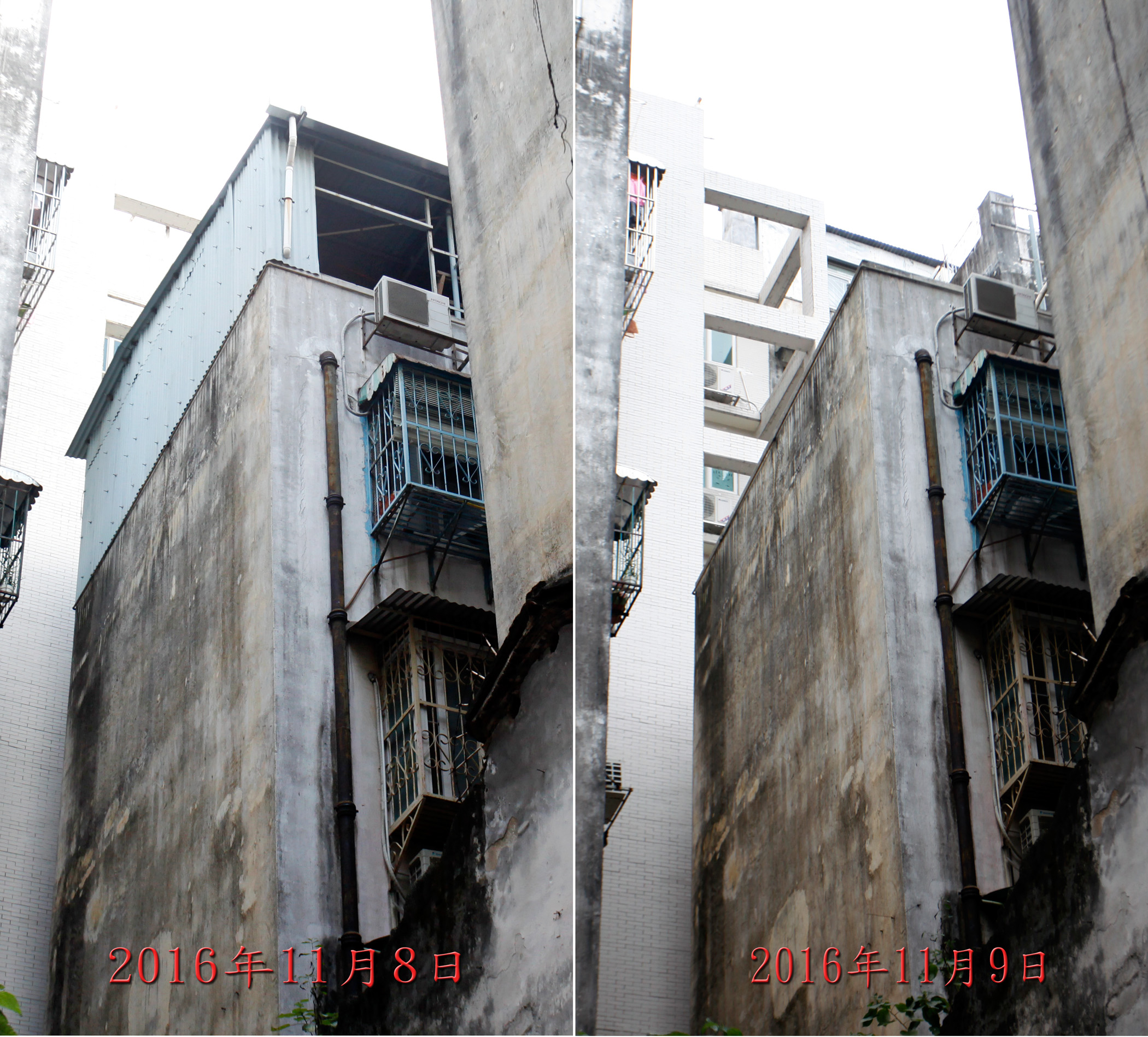 Recentemente, estes Serviços demoliram uma construção clandestina no terraço dum edifício de 5 andares situado na Travessa do Mata-Tigre, na sequência de reclamações dos residentes de que havia obras ilegais no terraço em causa. Antes da referida demolição, estes Serviços inspeccionaram e analisaram o local, tendo verificado que a construção clandestina obstruía o caminho de evacuação para o terraço. Depois de aberto o processo, os fiscais dirigiram-se várias vezes ao local para recolher elementos de prova e emitiram a respectiva ordem de embargo da obra, no entanto, o infractor ignorou-a. Foi ainda publicado nos jornais um edital no sentido de exigir ao infractor a demolição da construção ilegal e reposição do terraço num prazo de 8 dias. Após o termo do prazo, a DSSOPT, em conjunto com outros serviços públicos e com a colaboração do Corpo de Polícia de Segurança Pública, procedeu à respectiva demolição. A operação integrou a demolição não só da construção ilegal no terraço mas também a demolição de um portão metálico instalado ilegalmente nas escadas que ligam o 3.º ao 4.º andar. De facto, tinha verificado no local que o portão metálico e a construção clandestina no terraço impediam significativamente o acesso ao terraço do edifício e que haviam sido colocados inúmeros objectos no terraço.