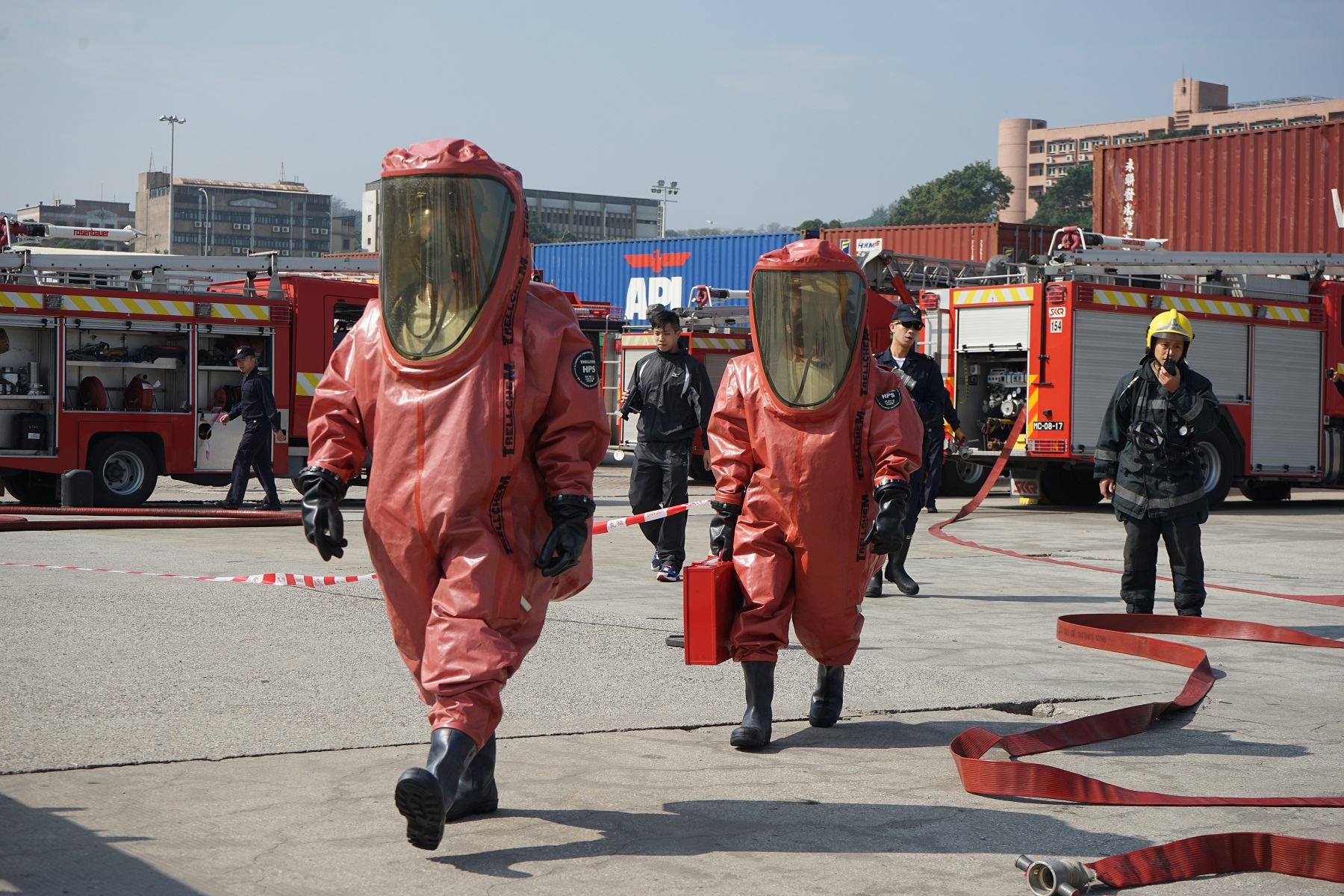 O exercício simulou um incêndio no contentor que continha o produto químico, no processo de embarque e desembarque das substâncias perigosas no Cais de Contentores do Porto de Ká-Hó. O Cais de Contentores do Porto de Ká-Hó accionou imediatamente as medidas de segurança, deu instruções para parar a operação, evacuou o respectivo pessoal para o ponto de evacuação e encontro de acordo com o plano de emergência interno e ligou ao CB. Durante o momento, simulou-se que 1 pessoa sentiu-se mal por ter inalado descuidadosamente os gases tóxicos. Após o alarme, esta Corporação enviou logo 7 veículos de emergência e 30 bombeiros ao local para executar a evacuação, lidar com o incidente e transportar aquela pessoa indisposta para o hospital conforme o plano definido. O simulacro durou cerca de 40 minutos, cujo processo correu bem e cujos objectivos previstos foram alcançados.
