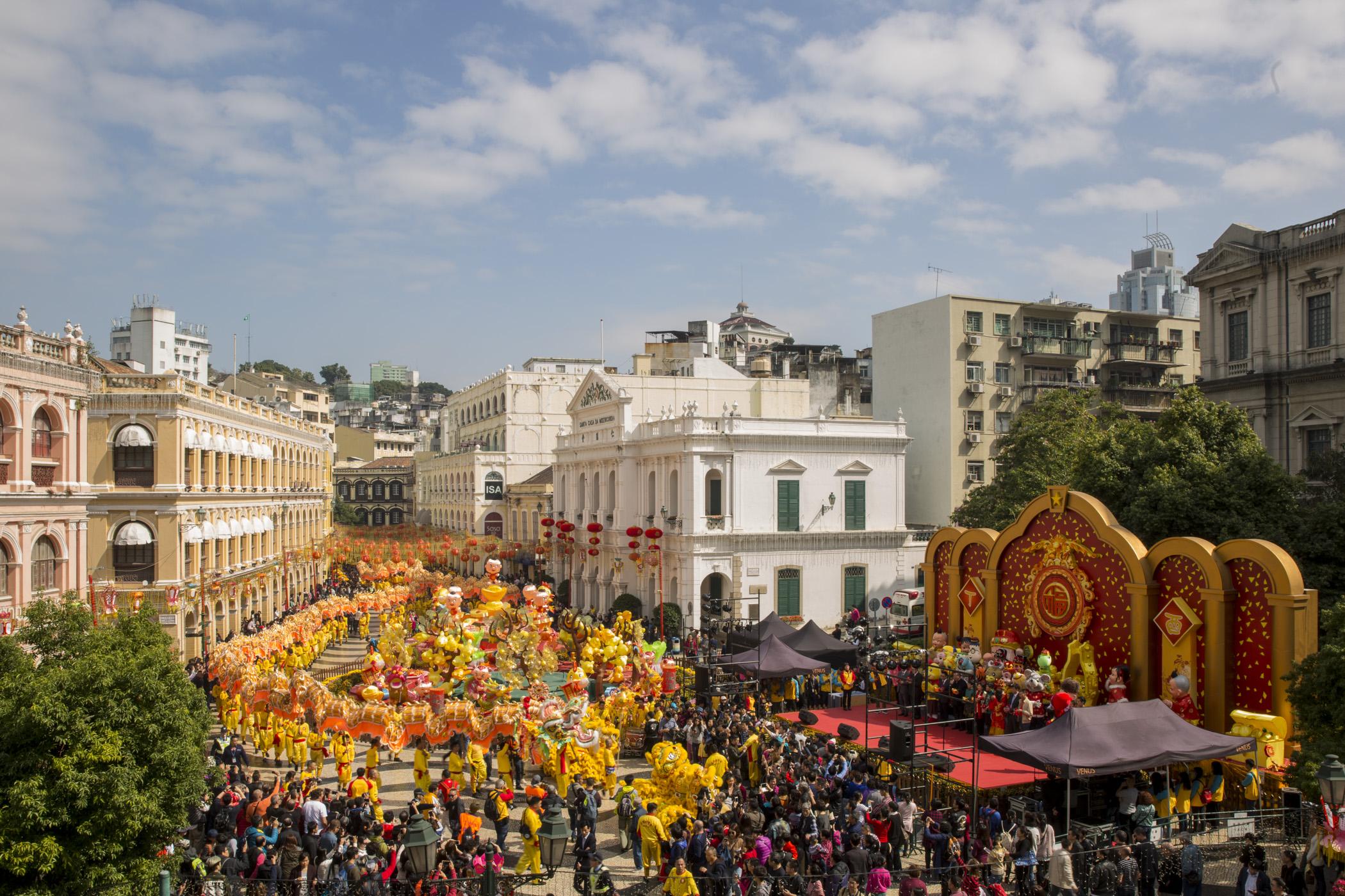 A directora da DST, Maria Helena de Senna Fernandes, o presidente do Conselho de Administração do IACM, José Tavares, os subdirectores da DST, Cecilia Tse e Cheng Wai Tong, a par com representantes da indústria turística, entre outros convidados, na manhã do primeiro dia do Ano, segundo o calendário lunar chinês, presidiram à cerimónia de vivificação do dragão gigante dourado e leões, no largo das Ruínas de S. Paulo, à qual se seguiu uma queima de panchões, no Largo do Senado. Os convidados, em conjunto com o Deus da Fortuna, distribuíram, em seguida, “lai-sis” e lembranças pelos residentes e visitantes no Largo do Senado, em ambiente de grande animação, sobretudo na altura de receber “lai-sis” das mãos do Deus da Fortuna, como sinal de boa sorte, fazendo votos de prosperidade e abundância para Macau.