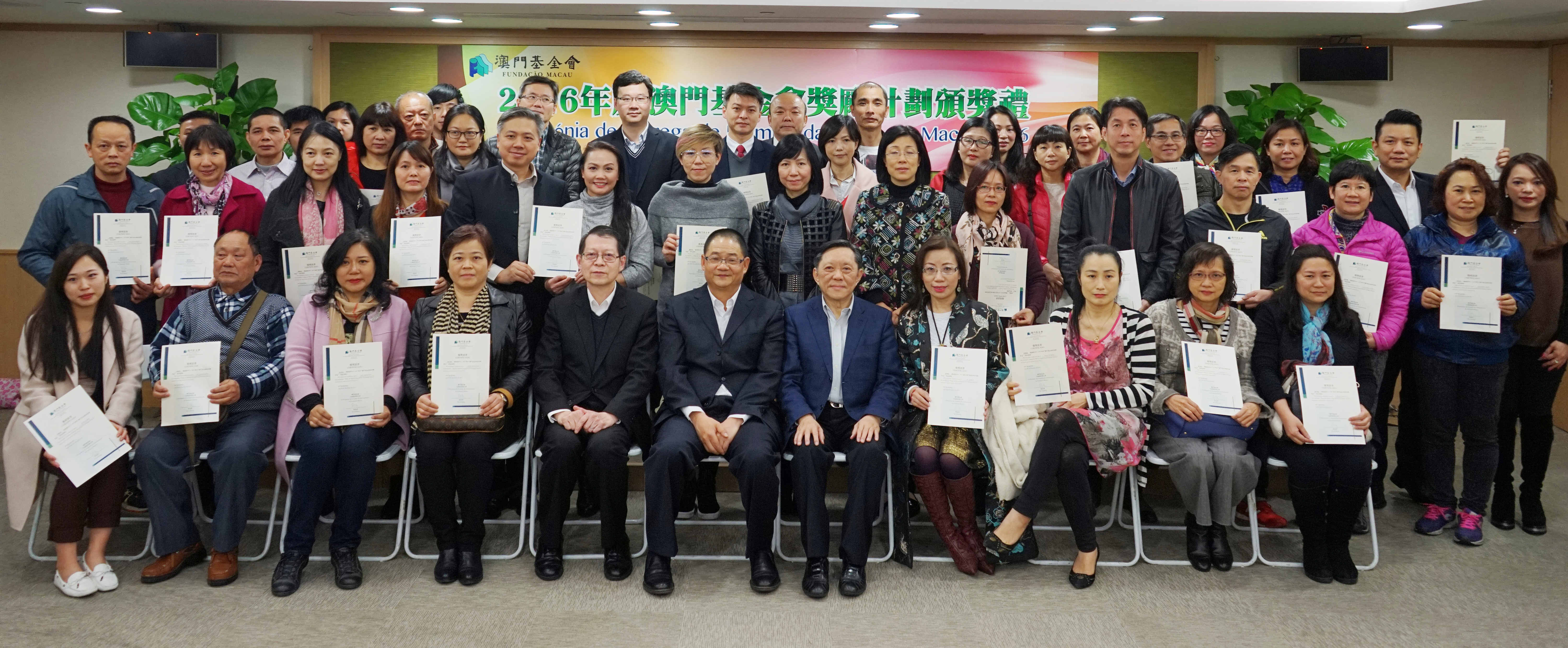 Na Cerimónia, foram entregues cartas de louvor a oito equipas que venceram os “Prémios para Talentos de Macau, 2016” e certificados a 55 estudantes que ganharam a Bolsa de Mérito Especial da Fundação Macau para o ano lectivo 2016/2017. No ano de 2016, mais de dez mil estudantes territoriais receberam bolsas de estudo da Fundação Macau, no valor total de 60 milhões de patacas.