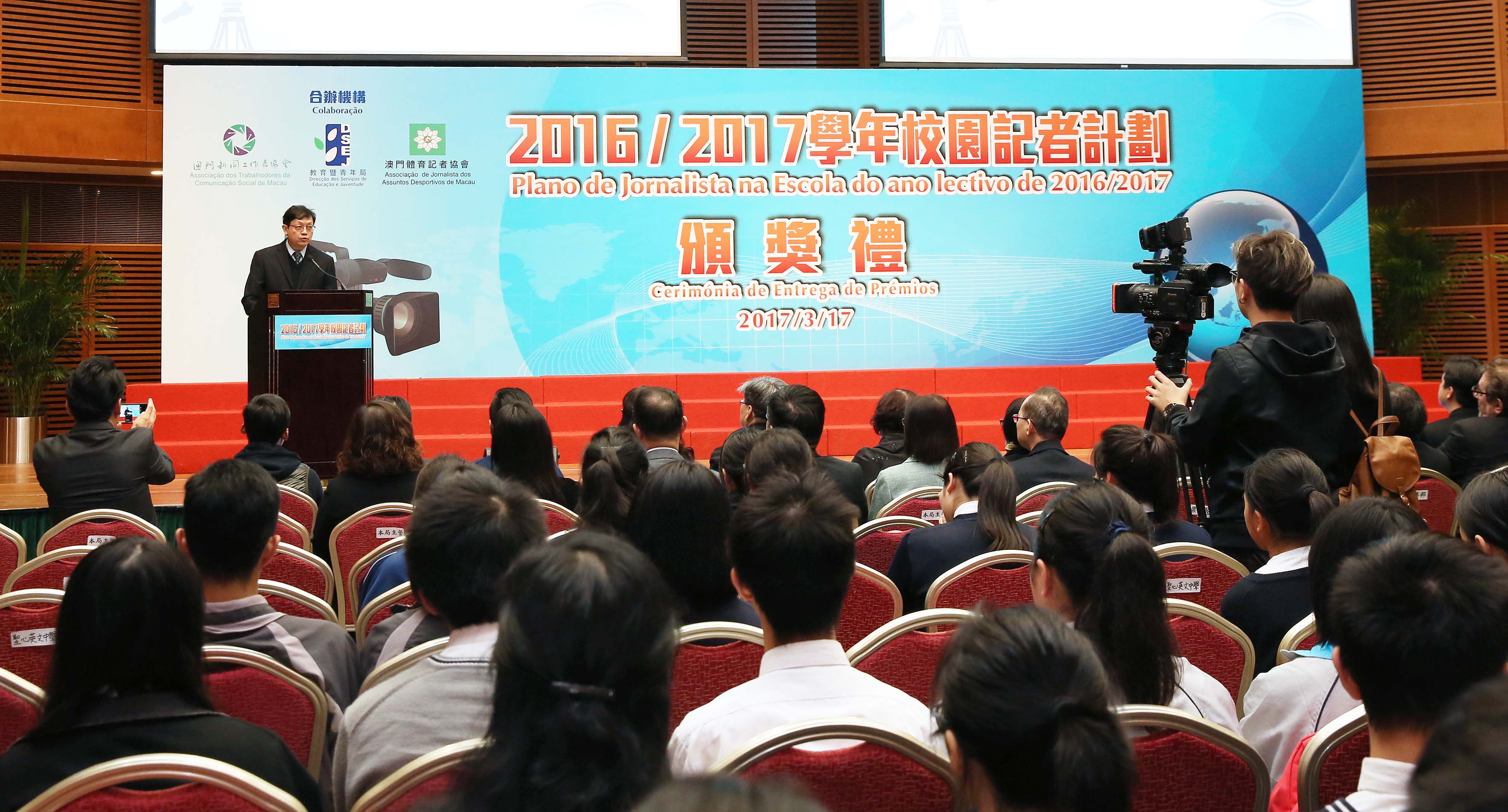 O “Plano de Jornalista de Escola” do ano lectivo de 2016/2017, organizado pela Direcção dos Serviços de Educação e Juventude (DSEJ), em conjunto com a Associação dos Trabalhadores da Comunicação Social de Macau e a Associação de Jornalistas dos Assuntos Desportivos de Macau, teve início em Novembro de 2016. Esta edição, sob o tema a “promoção do crescimento mental e físico, formação de boa capacidade de adaptação à comunidade”, abrangeu as áreas de jornais e revistas e de média electrónicos, e contou com a participação de 108 alunos oriundos de 20 escolas de Macau. Através da aprendizagem, formação, visitas e actividades práticas, foram seleccionadas pelo júri sete obras excelentes, cuja cerimónia de entrega de prémios realizou-se na tarde do dia 17 de Março de 2017, no Centro de Ciência de Macau, para celebrar os brilhantes resultados alcançados.