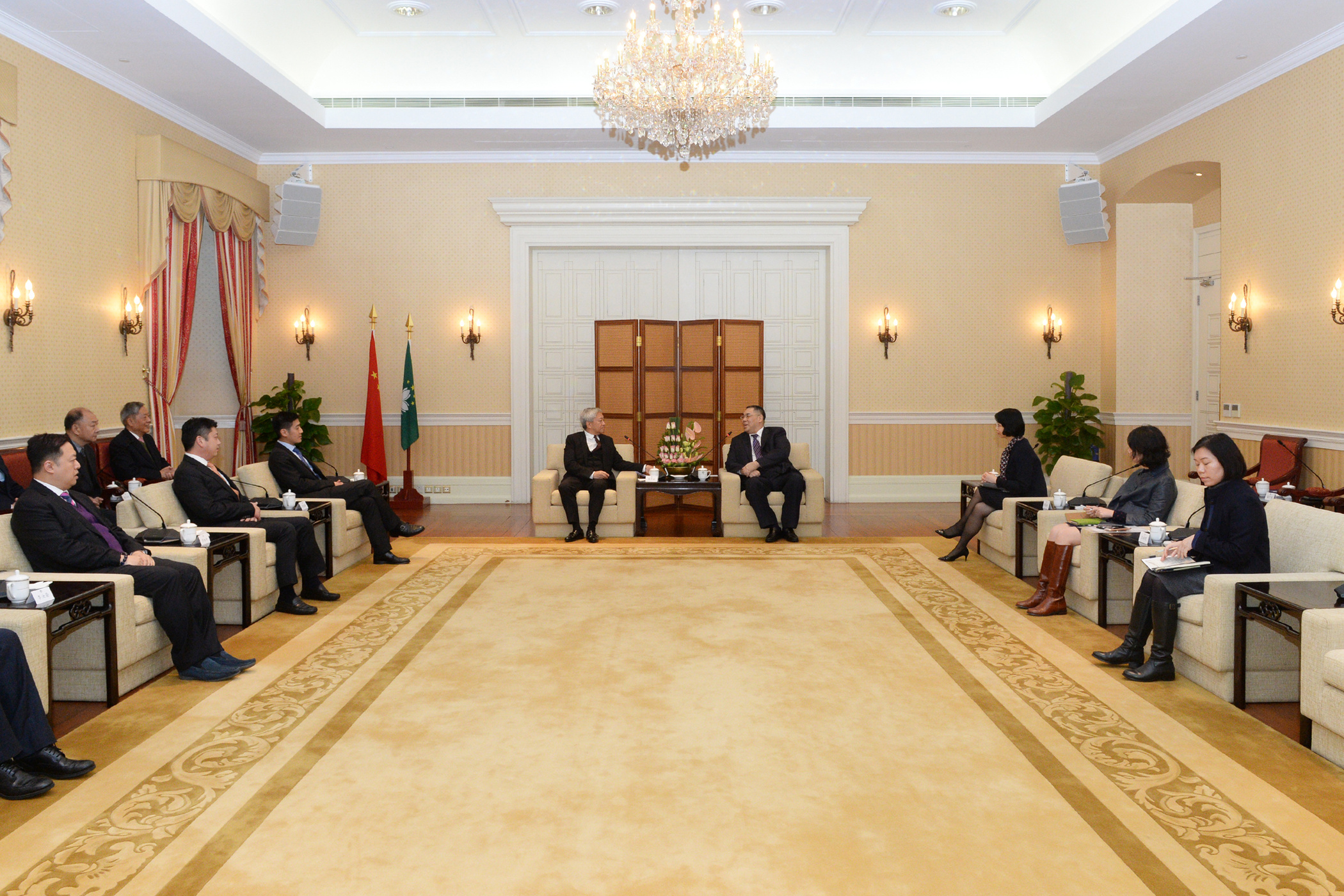 Estiveram também presentes no encontro, a chefe do Gabinete do Chefe do Executivo, O Lam. Da parte da União das Associações dos Proprietários de Estabelecimentos de Restauração e Bebidas de Macau, os vice-presidentes, Ma Chi Seng, Ho Kevin King Lun, Li Chu Kwan, os vice-presidentes da direcção, Fong Kin Fu, Loc Cuoc Kei, Cheng Iok Kuan, Chao Weng Tang, Lo Kam Kuan, o director-executivo, Tong Kai Chung, entre outros.