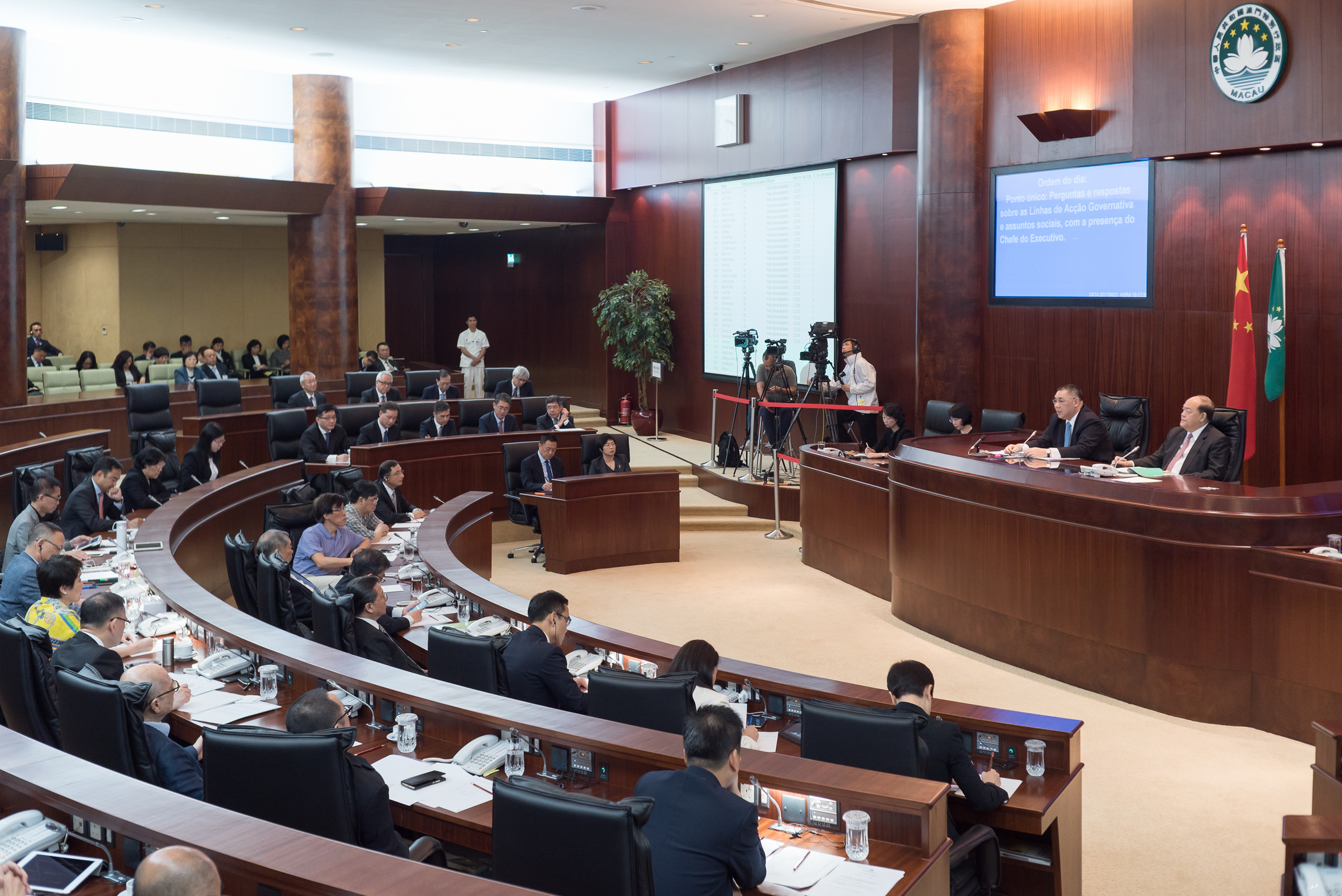 • Chefe do Executivo, Chui Sai On presente no plenário da Assembleia Legislativa para responder às perguntas dos deputados